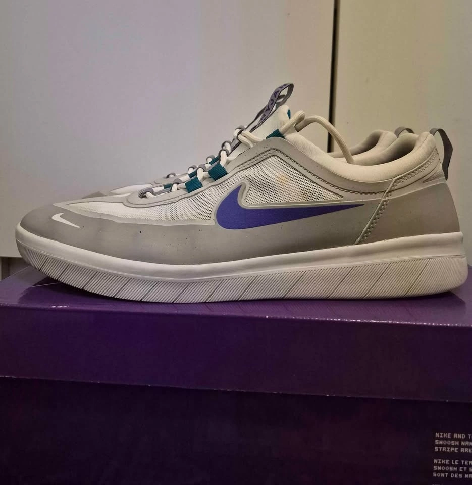 Men's Nike SB Nyjah Free 2 skate shoes in "Wolf Grey/Fierce Purple". Size 12. Used but still in great condition. Pick up is in Vancouver.