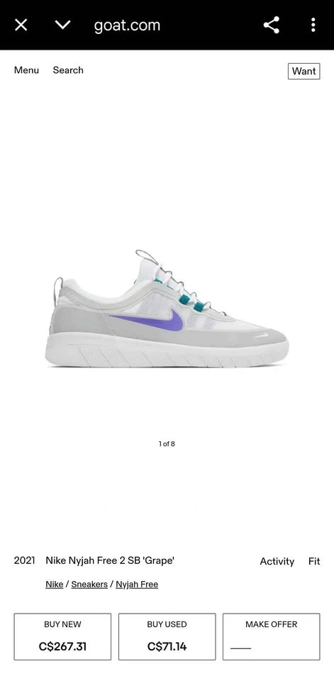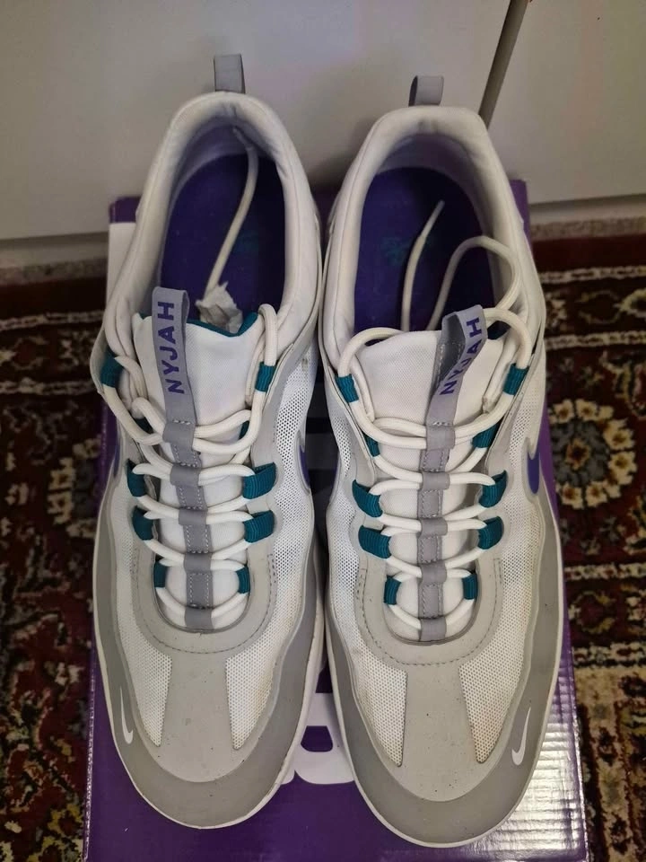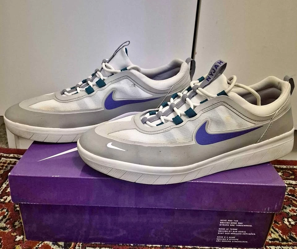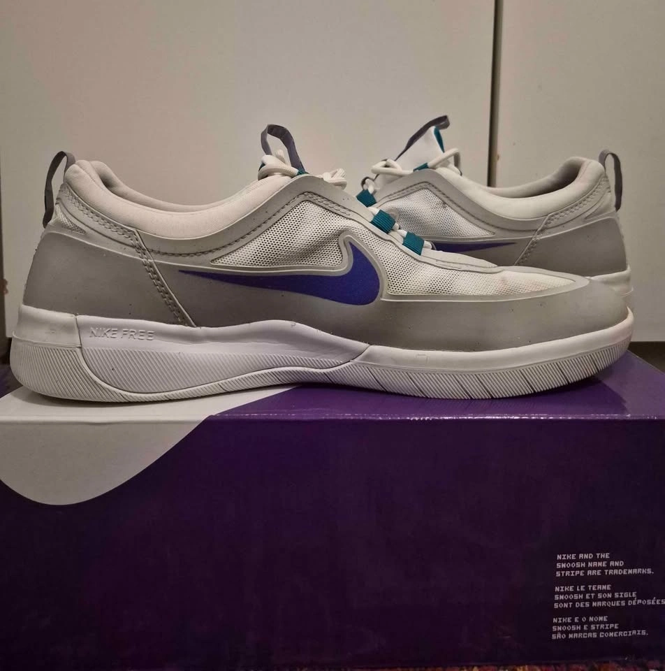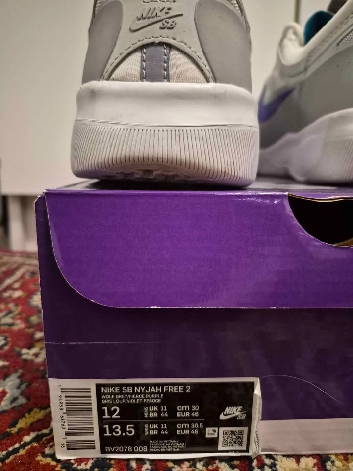 Men's Nike SB Nyjah Free 2 skate shoes in "Wolf Grey/Fierce Purple". Size 12. Used but still in great condition. Pick up is in Vancouver.