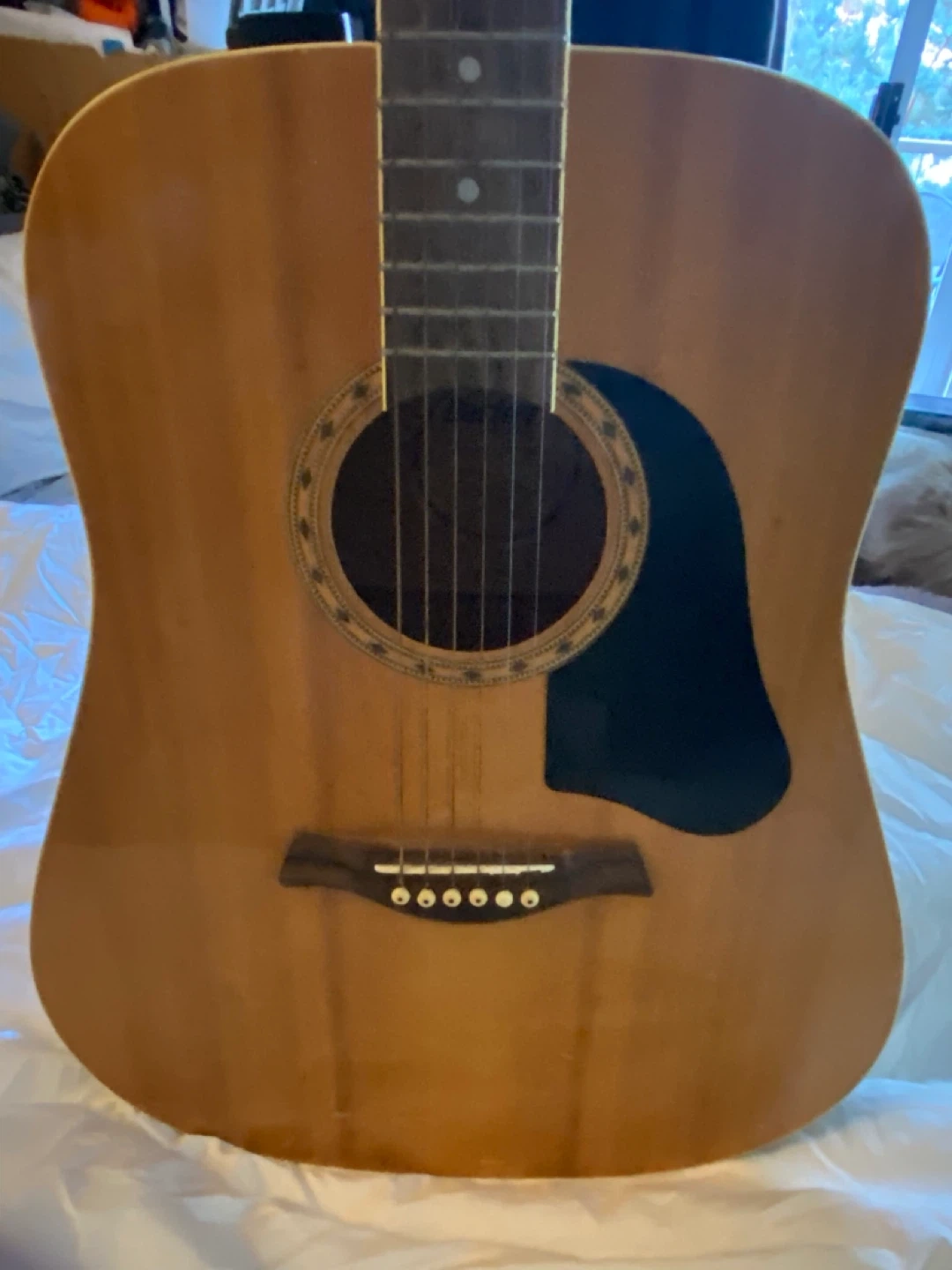 114Selling a Rocker acoustic guitar. It's in good condition and ready for a new home. Perfect for beginners or anyone looking for a reliable instrument to play!