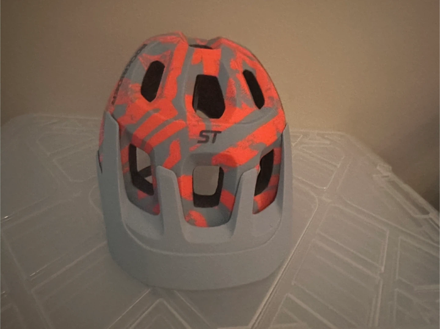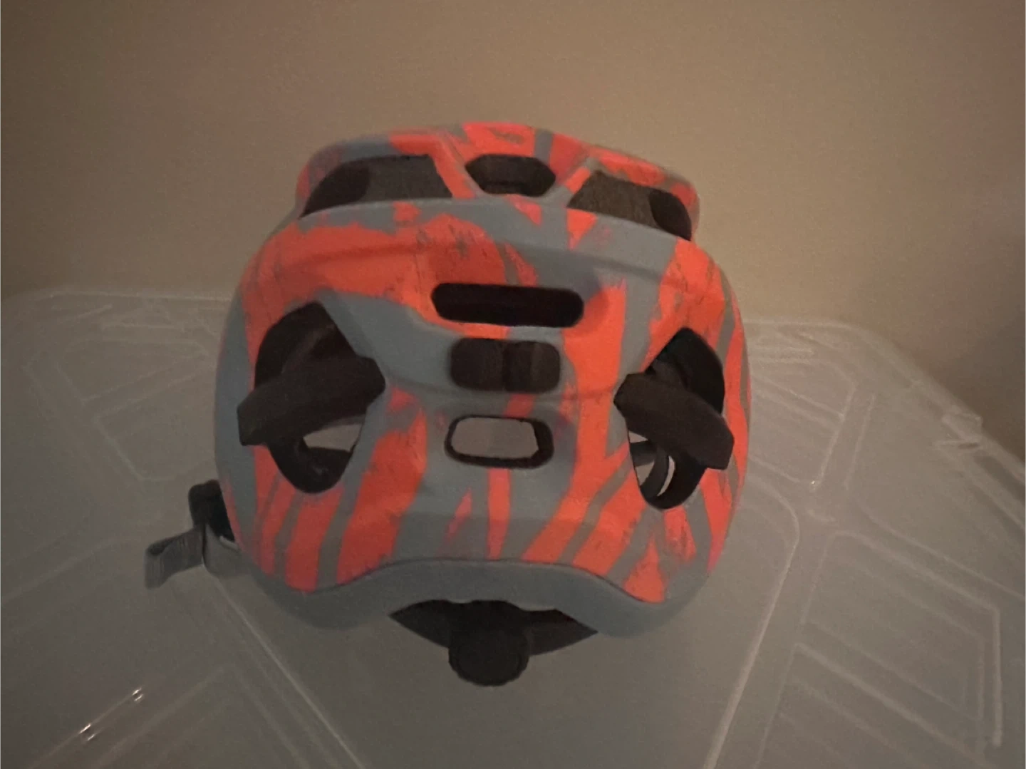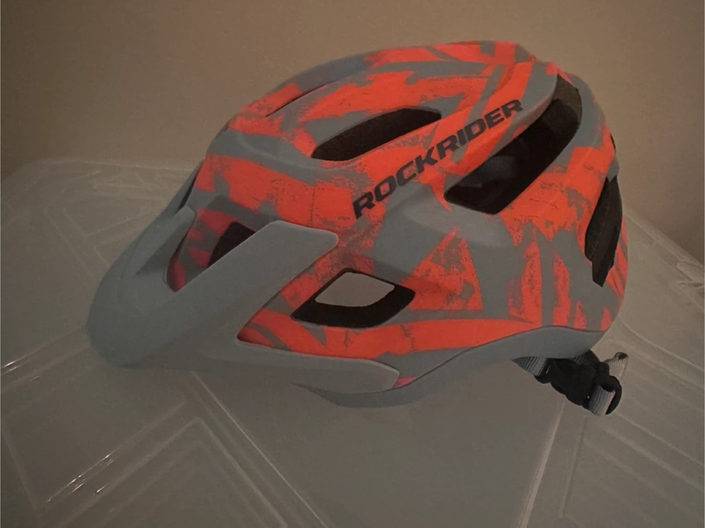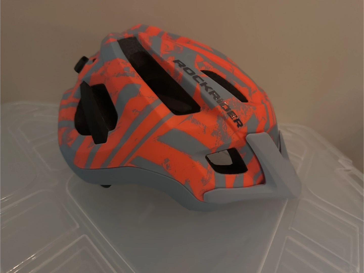 82Selling a Rockrider mountain biking helmet in great condition! The helmet features a cool orange and grey pattern. Perfect for hitting the trails!
