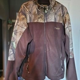 10Rocky hunting fleece jacket in excellent condition, no rips or tears. It was lightly used and has several pockets inside and outside for storage. Size 2XL.