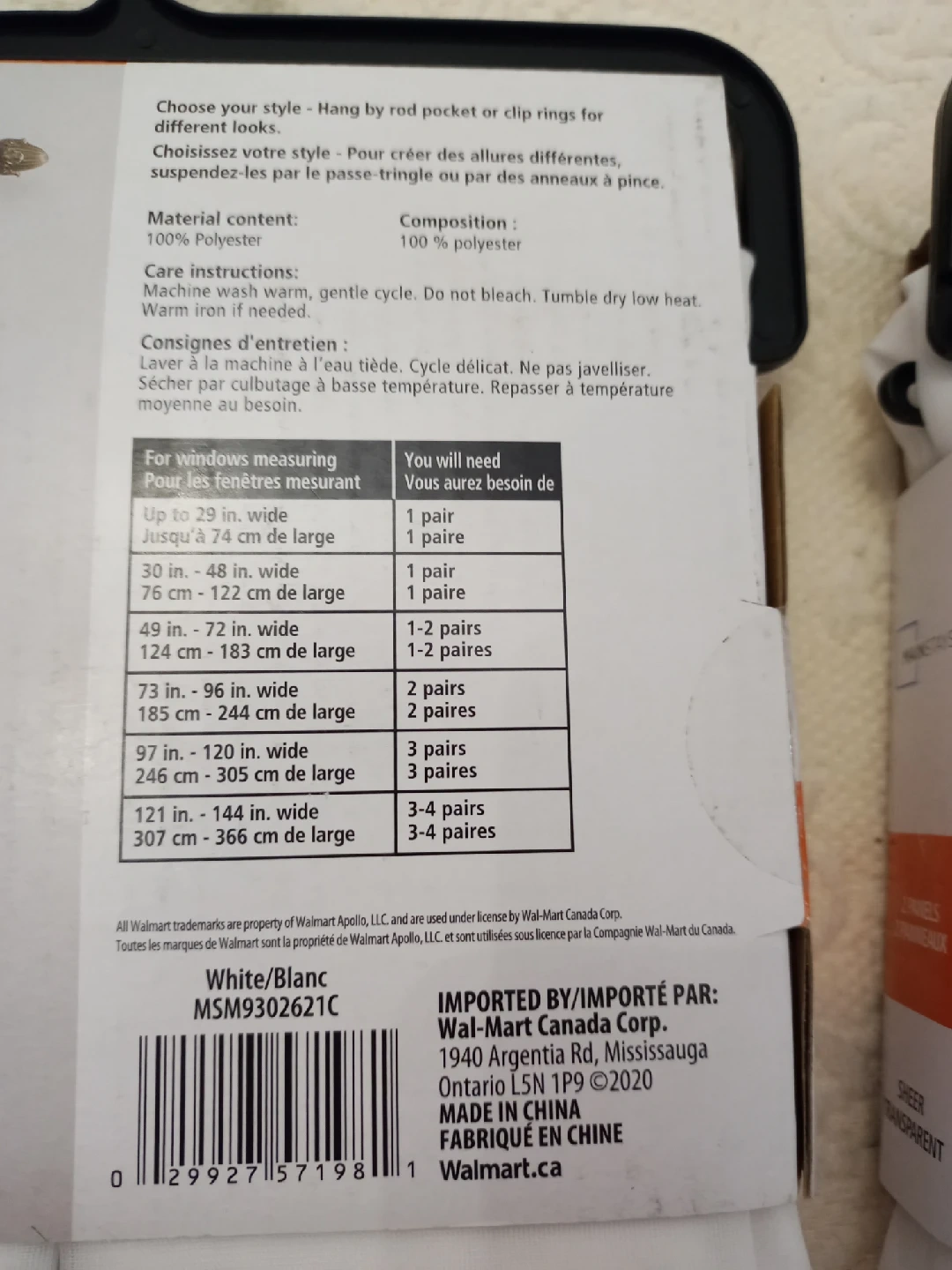 Rod Pocket Curtain Panels - By Mainstays - New! - 2 Packages