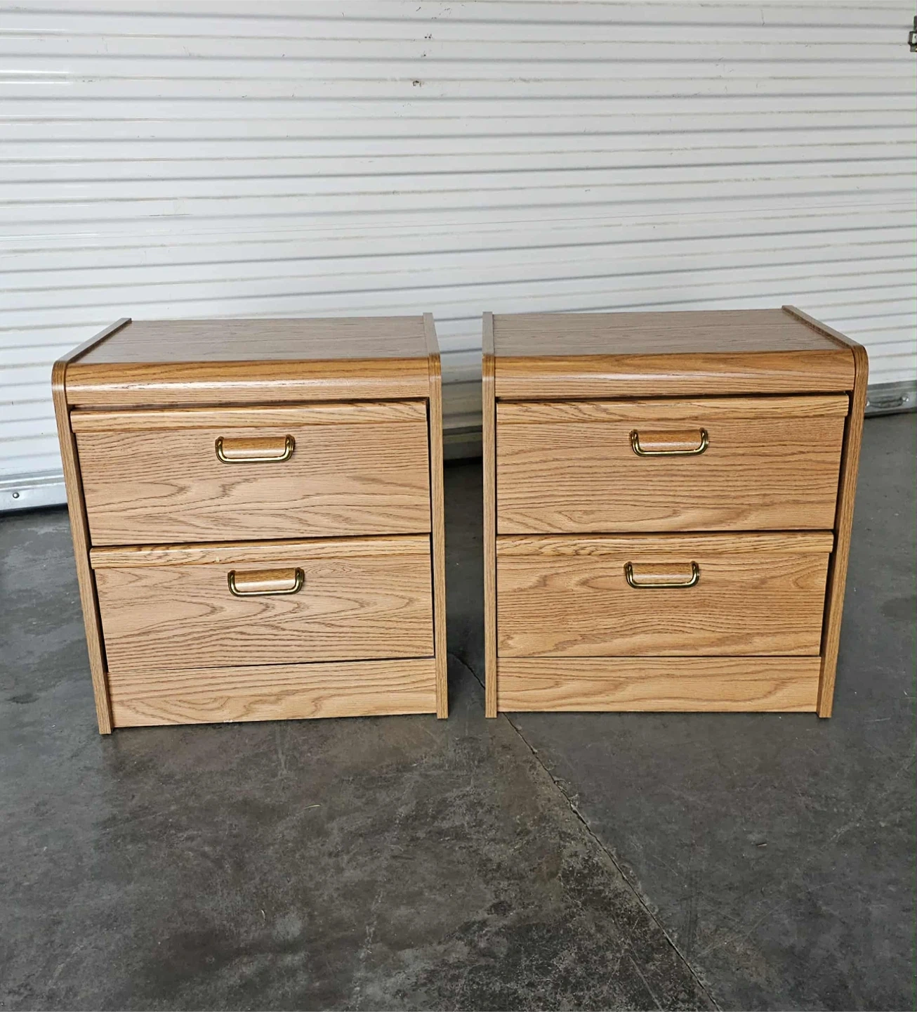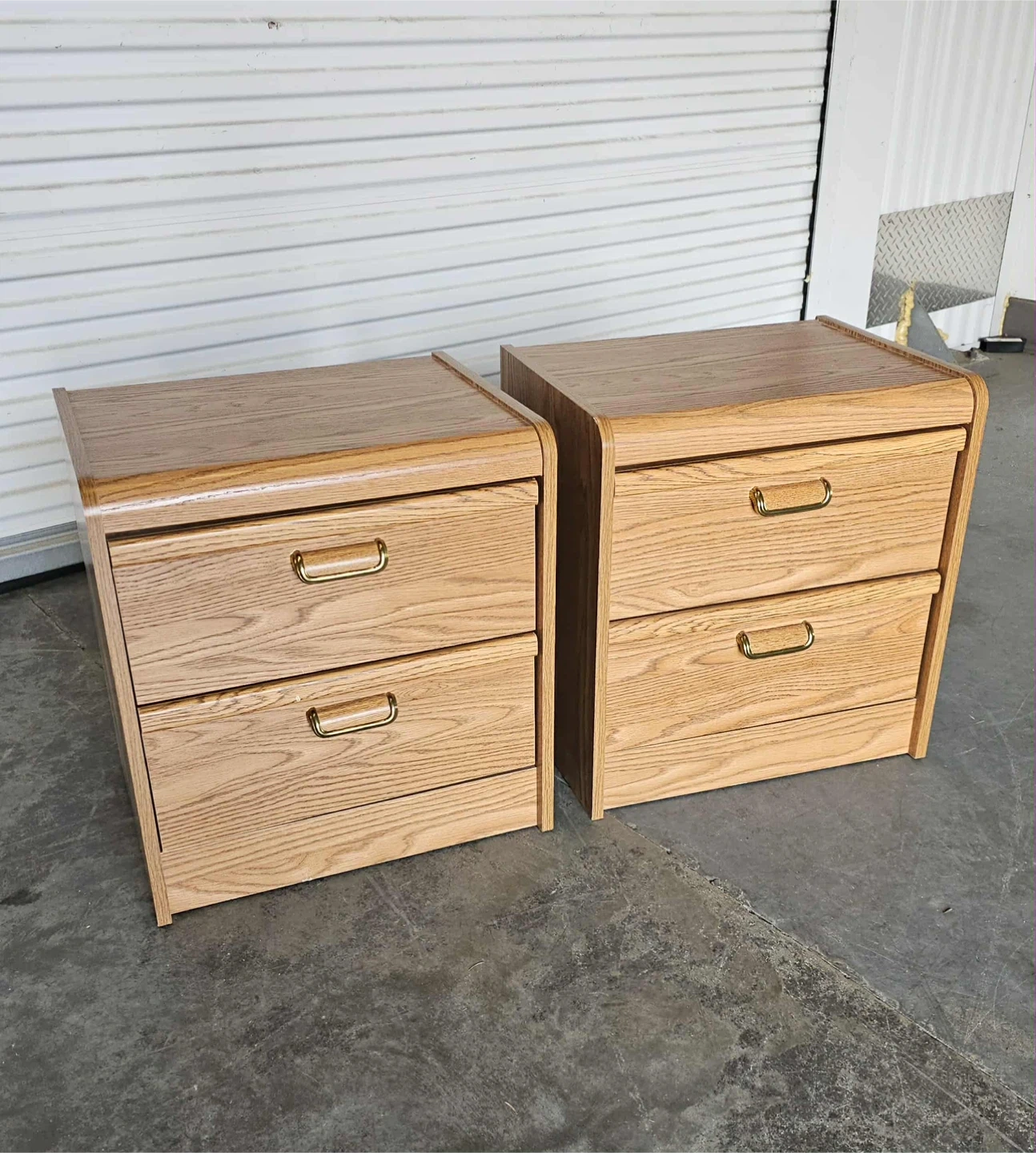 Pair of vintage mdf 2 drawer bedside tables - 22h x 20.5wx 16d