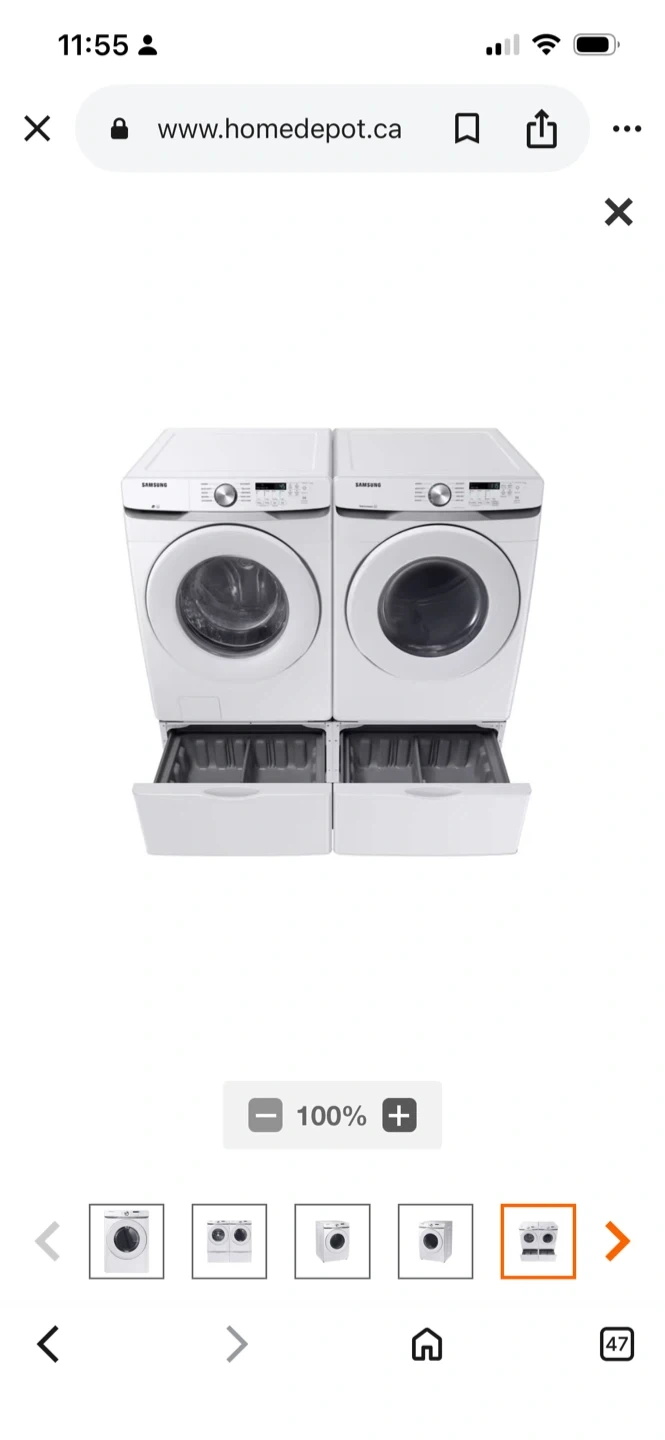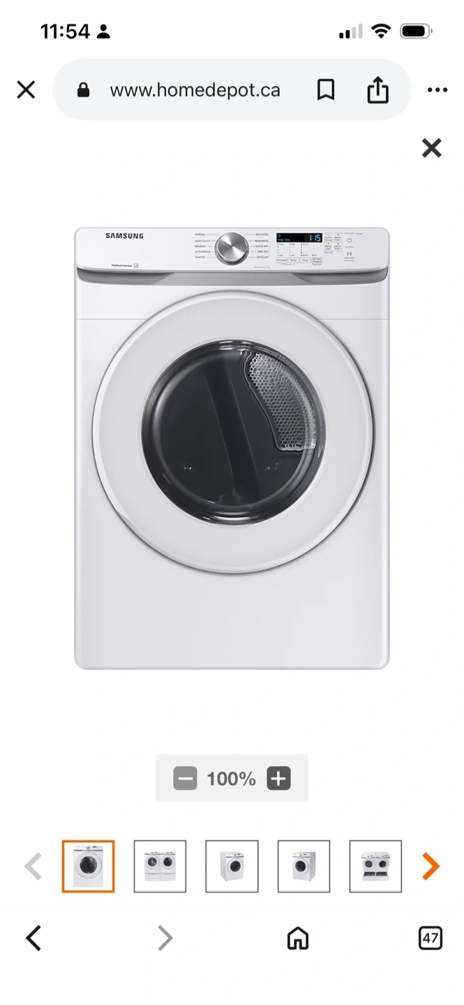 This is a white Samsung clothes dryer. It has a large capacity drum for all your laundry needs. The control panel is user-friendly and offers multiple drying cycles.