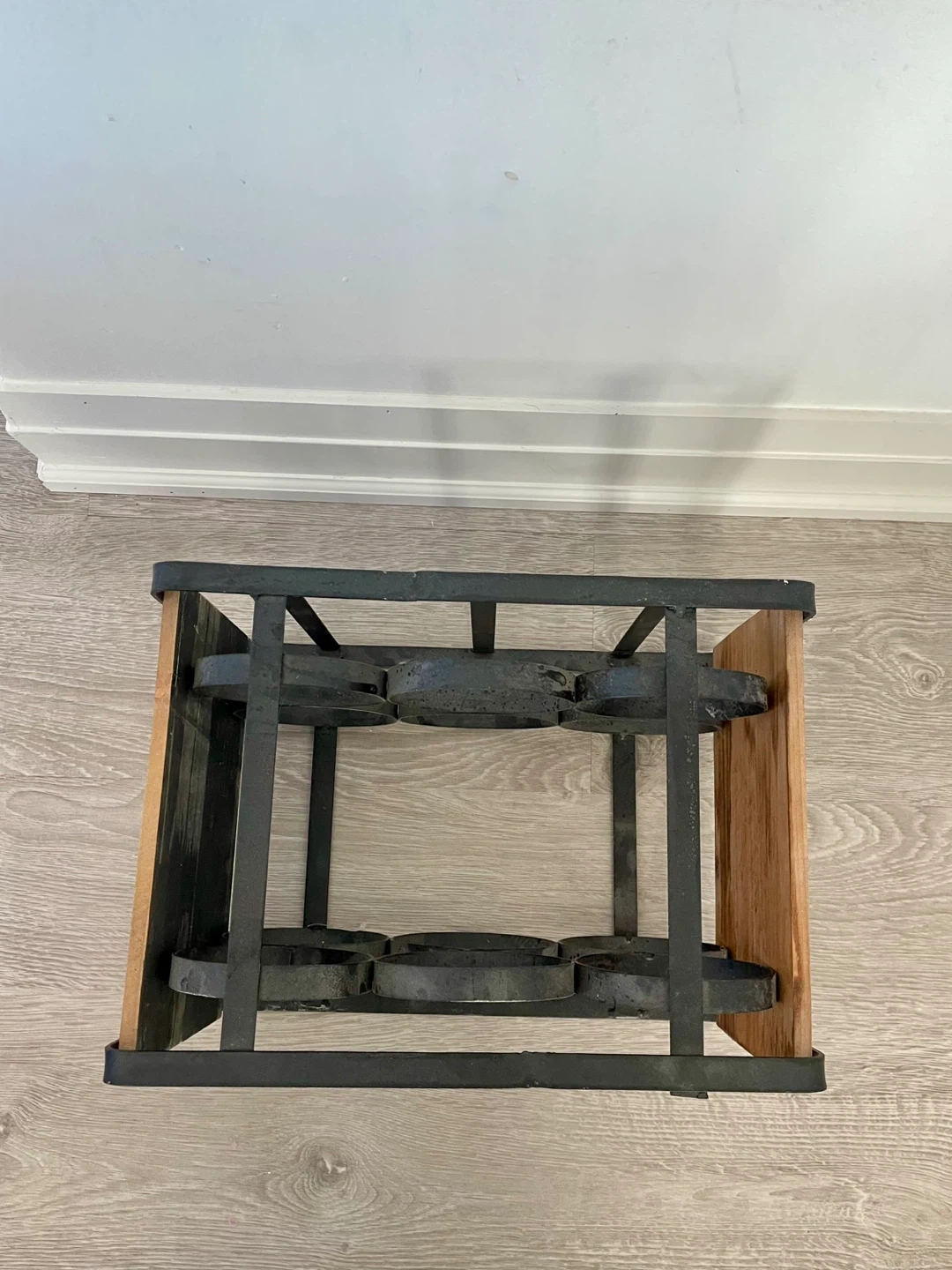 Selling a wine rack with 'La Maison Du Chiarello' on the side. It holds 6 750 ml wine bottles and has a rustic look with a metal frame and wooden sides