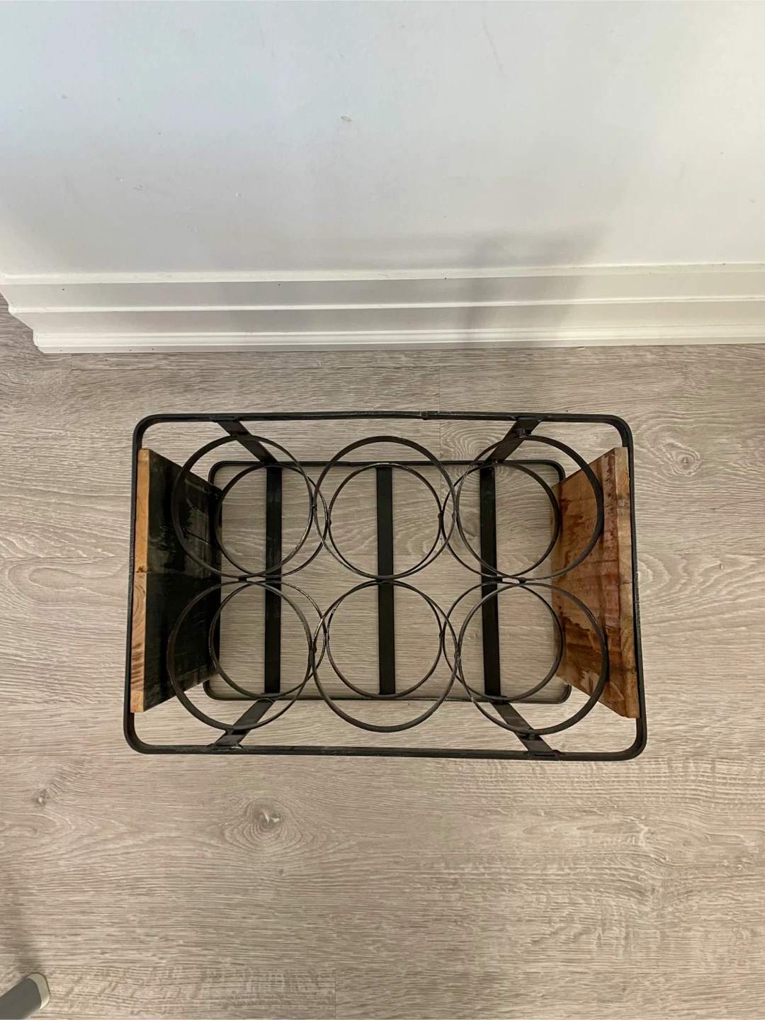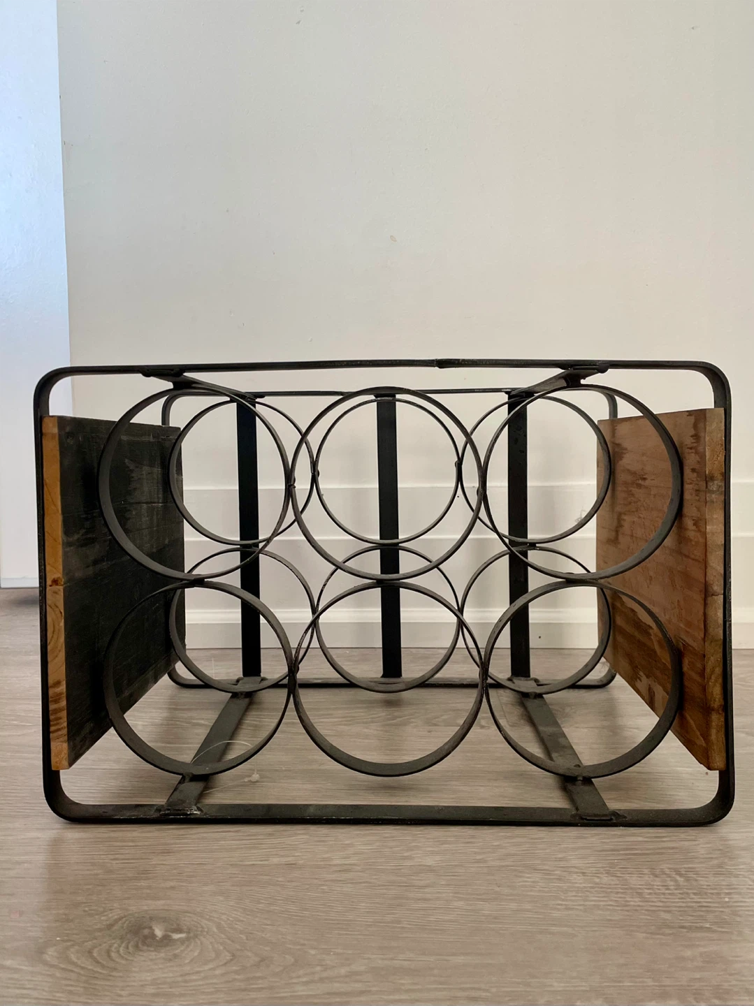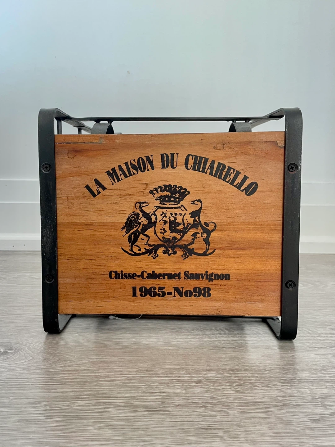 Selling a wine rack with 'La Maison Du Chiarello' on the side. It holds 6 750 ml wine bottles and has a rustic look with a metal frame and wooden sides