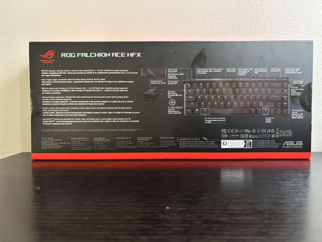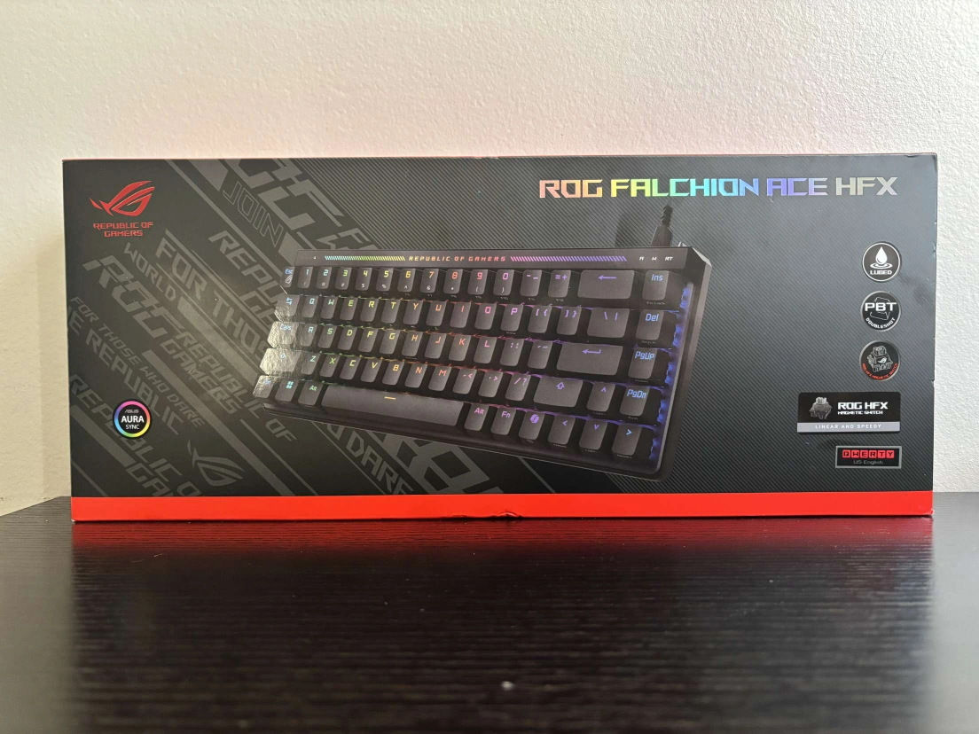 ROG Falchion Ace HFX mechanical keyboard. Compact 65% layout. PBT keycaps. Aura Sync RGB lighting. New in box.