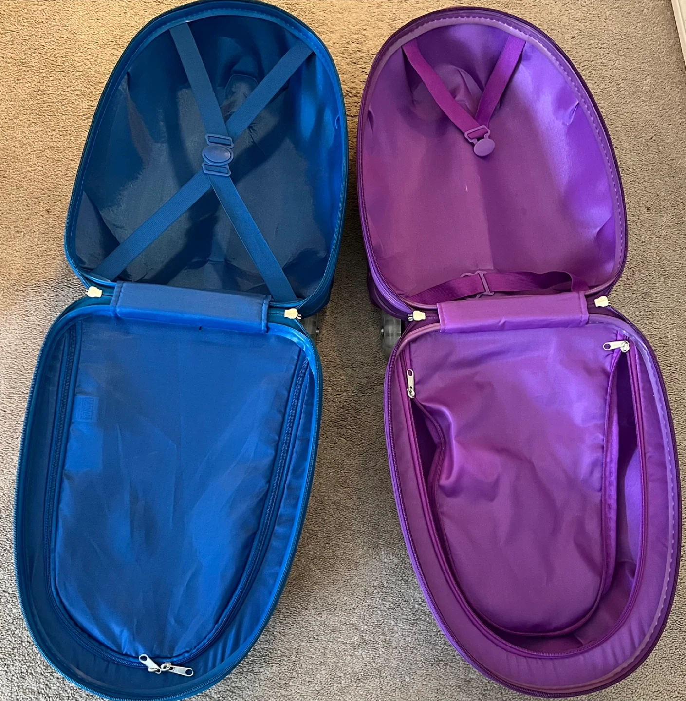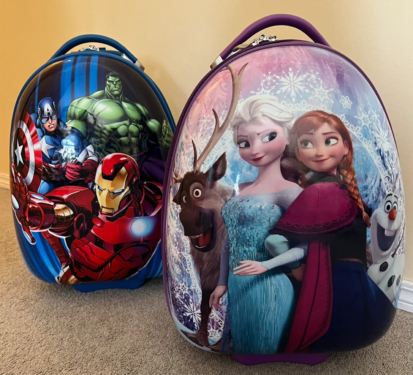 This set includes two fun kids' suitcases, one featuring Elsa and Anna from Frozen and the other with Marvel superheroes. They're perfect for little travellers to pack their own gear for trips. Each suitcase has a durable shell and secure zipper closure.