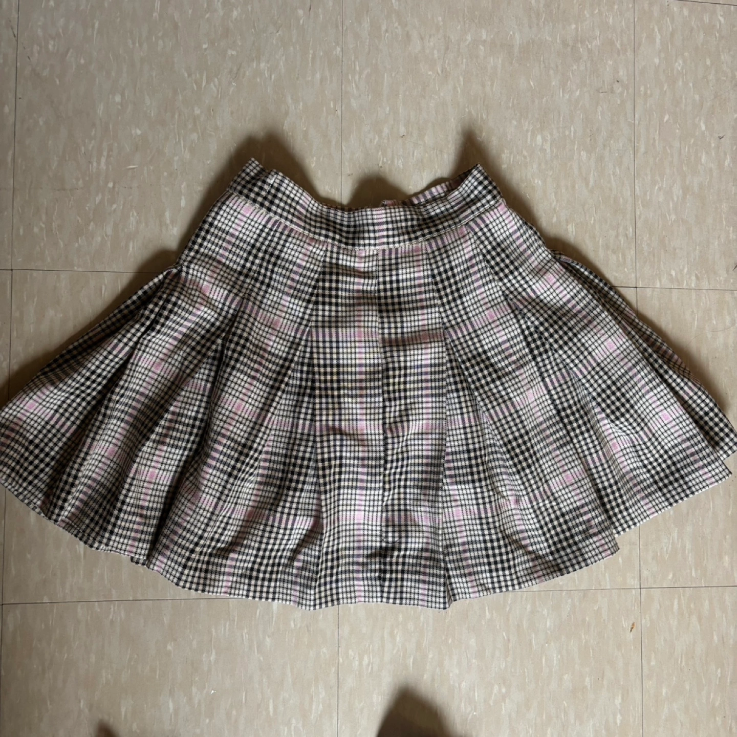 A cute plaid skirt in neutral colours.