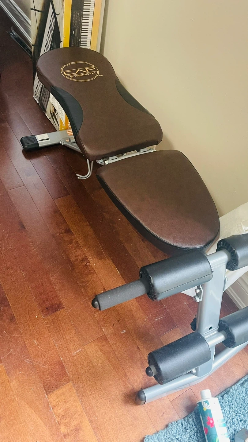 This adjustable weight bench from CAP Strength is great for home workouts. It's made with durable materials and offers multiple incline positions for a varied routine. The padded leg rollers provide comfort during exercises.
