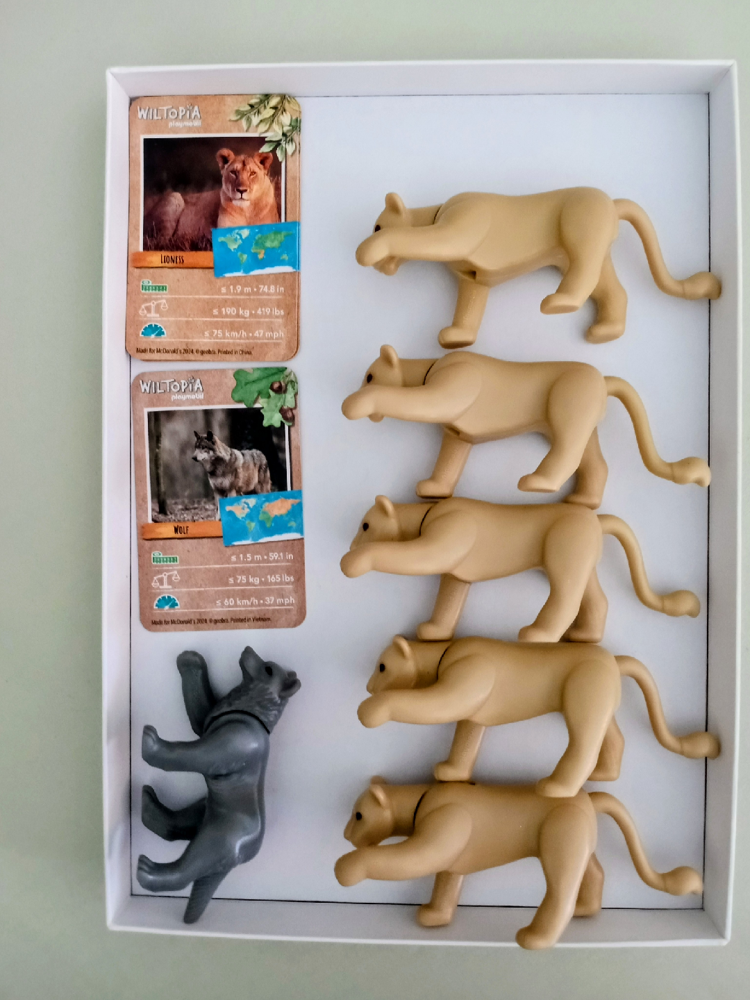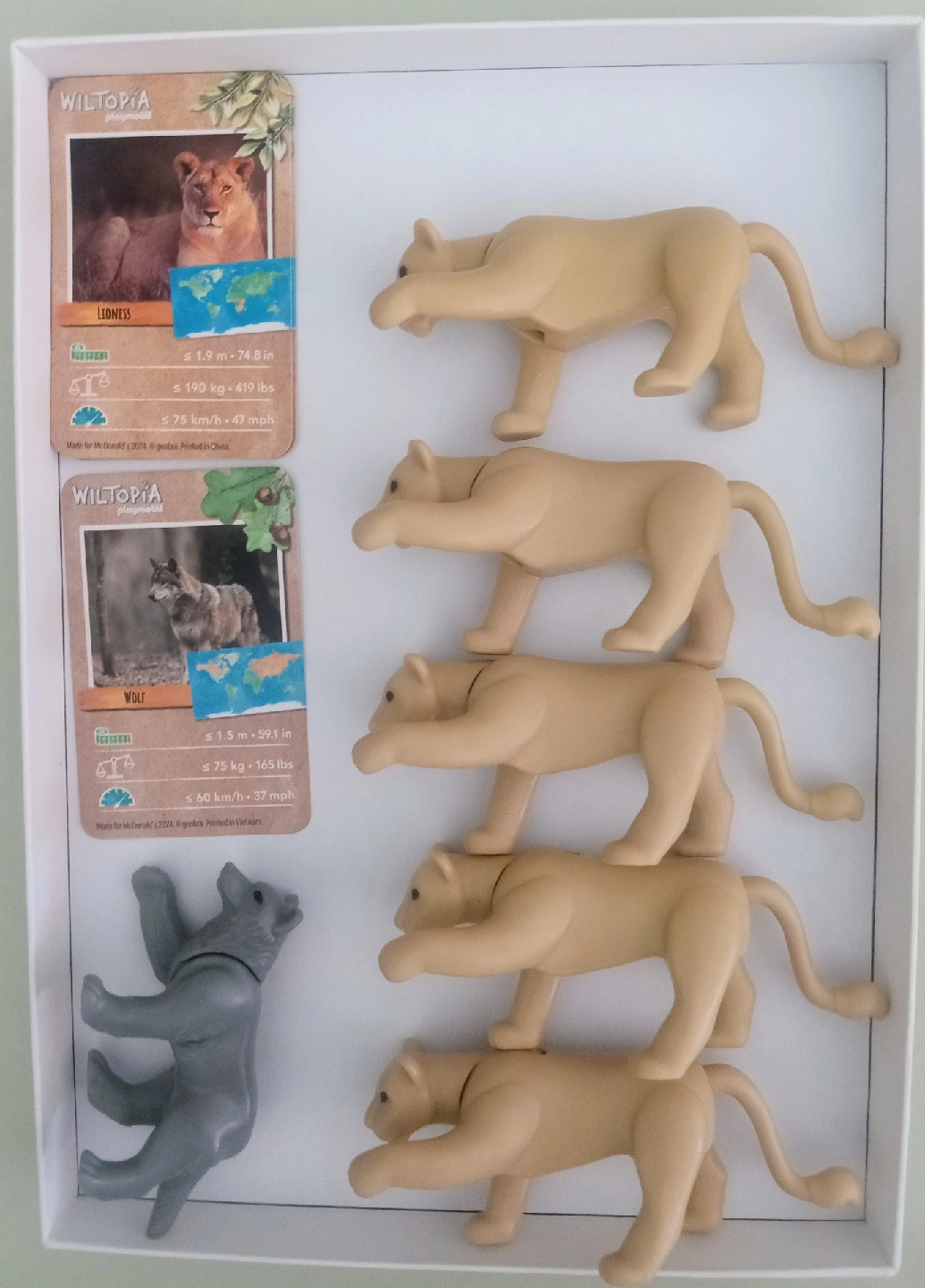 Selling a set of Wiltopia Playmobil figures featuring lionesses and a wolf. 6 McDonald's mini's. These figures are in great condition and come with their corresponding cards. Perfect for imaginative play!