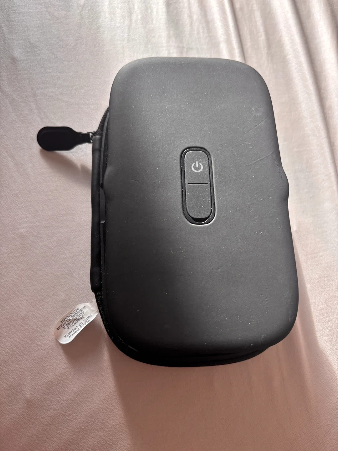 This HoMedics portable UV-C sanitizer case is great for on-the-go sanitization. It includes a USB cable for charging. The interior has a built-in charging port and indicator lights. It's made of a durable black material.