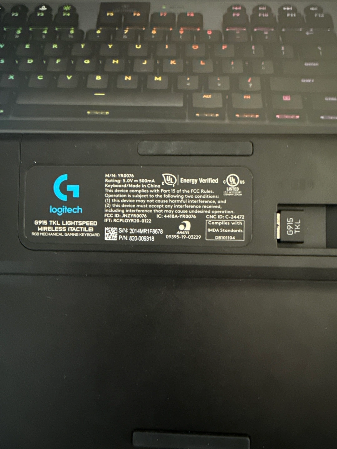 Tenkeyless mechanical gaming keyboard. Wireless RGB backlit keys. Includes box and accessories. Tactile feel.