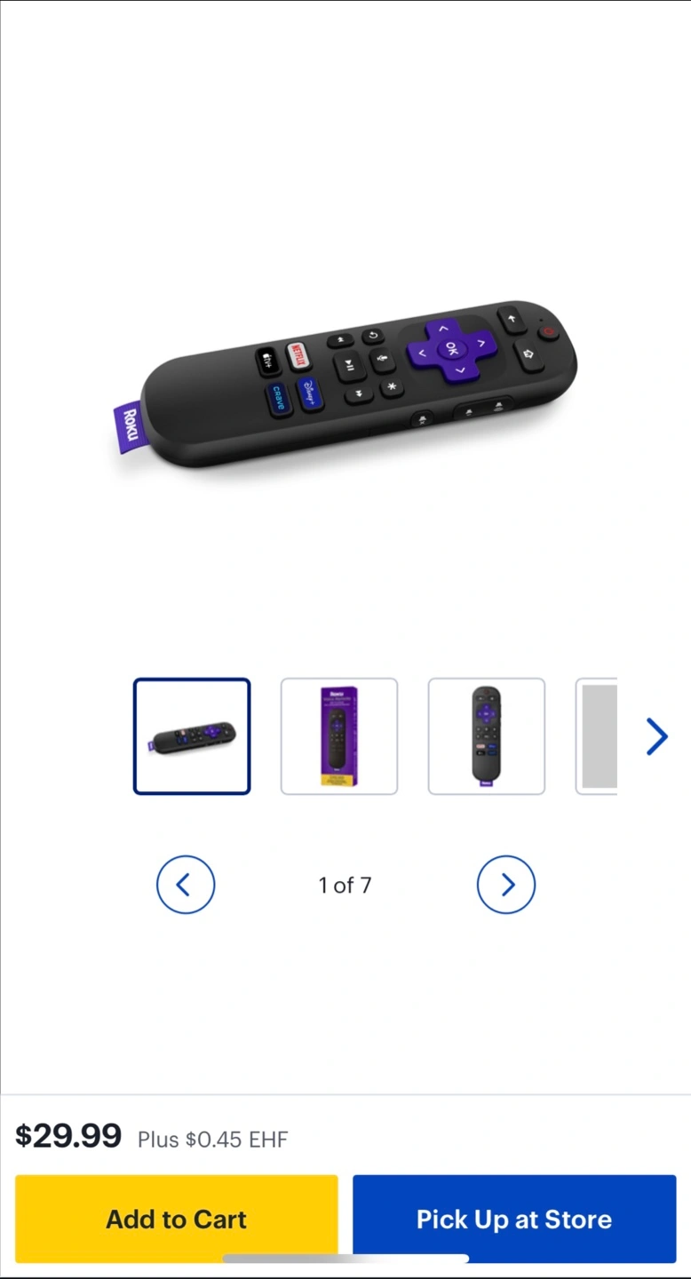 85Selling a Roku remote in black. It's in great condition and ready to use with your Roku device! It has buttons for Netflix, Apple TV, Disney+, and Crave