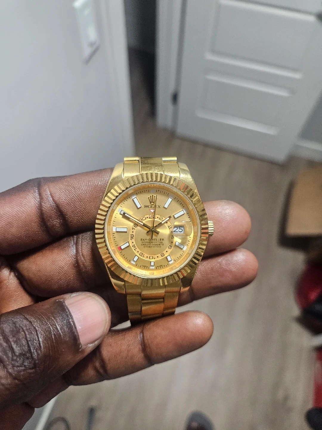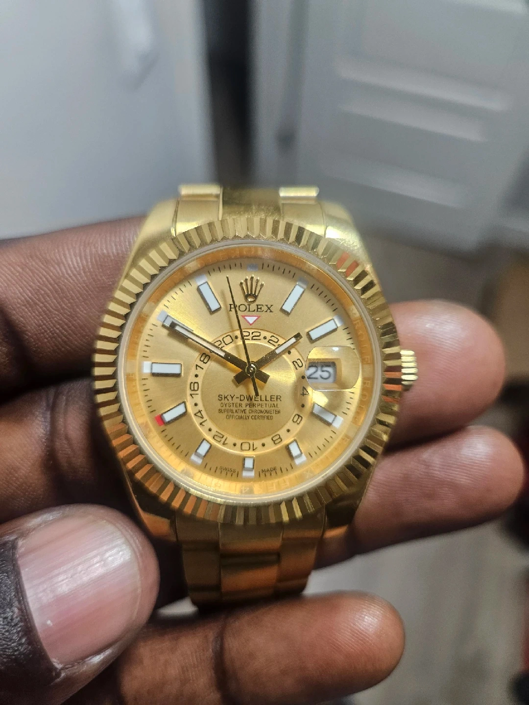 70Selling a Rolex Sky-Dweller watch in gold! It's a beautiful timepiece that would make a great addition to any collection. got all serials # for you to check authenticity