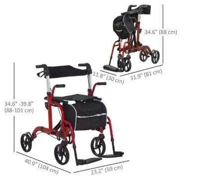 10Discover the freedom of movement with the HOMCOM rollator walker, a versatile mobility walker with seat that doubles as a wheelchair when needed. Enjoy comfort on-the-go with a plush seat, cosy backrest and adjustable footrests. Navigate smoothly and safely thanks to large, stable wheels and dual hand braking. Great for enhancing your independence! Seat, backrest for comfort, with footrest convert to wheelchair for versatility Six handle heights and three footrest adjustments enhance comfort Waterproof nylon bag secures belongings in all weathers Dual hand brakes and wheel locks boost safety Large wheels facilitate smooth mobility on uneven surfaces