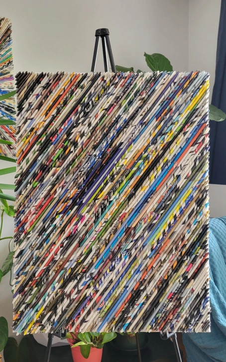 Unique piece of art made from rolled magazine paper. Adds a pop of colour and texture to any room! 18" x 24" Check out my other listings and bundle to save. ππ»πΈ Cash and pickup only on Brimley and Eglinton Rd E. in Scarborough.