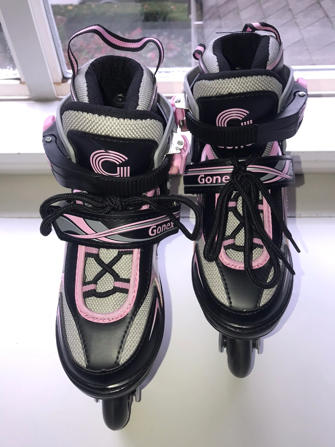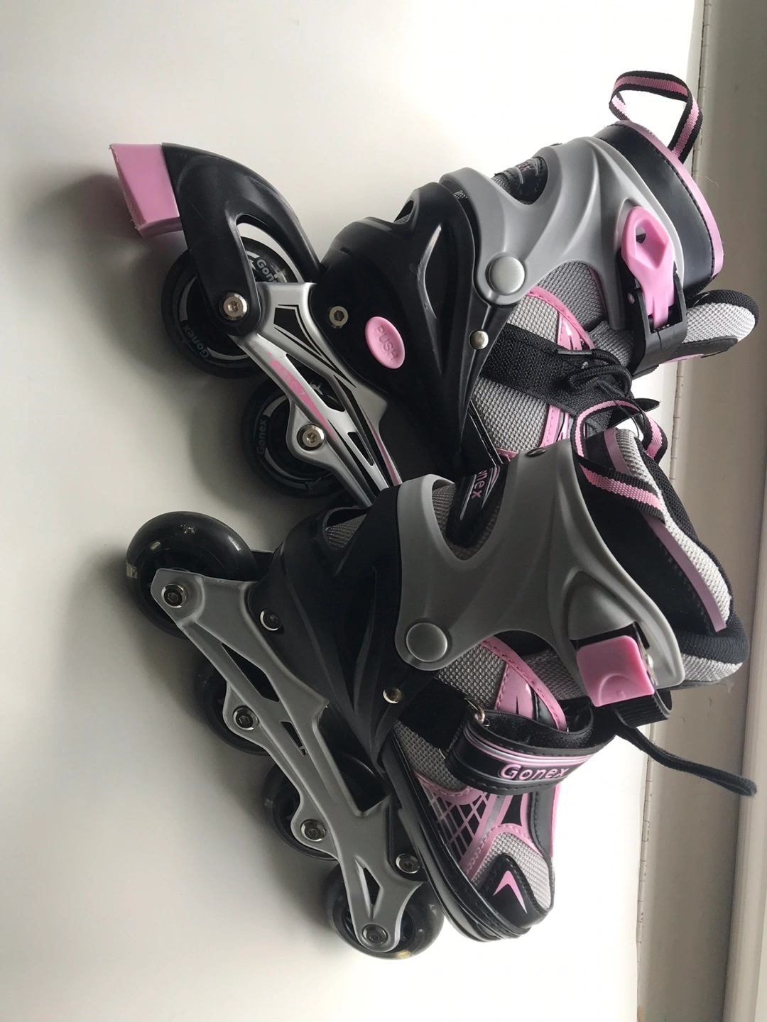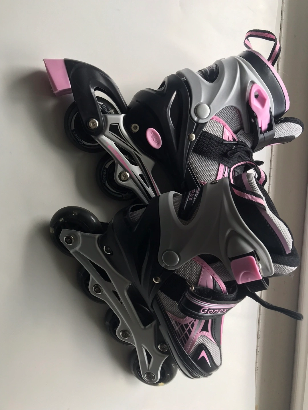 Roller blades Gotex Inline Skates girl small adjustable size with lights Please check the pictures, what you see is what you get. I’m in Fleetwood near the Community Center. I can ship, cost depends on the location For 2 any items I offer 5% Discount, for 3 items 10% discount and for 10 or more 20% Discount Thank you for check my listings.