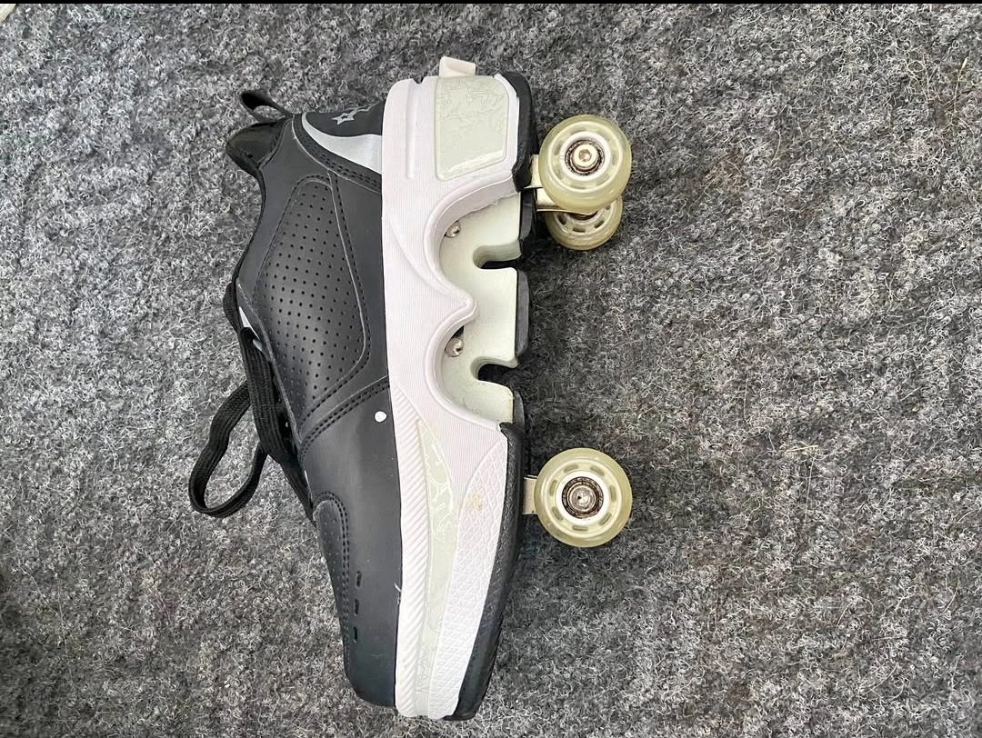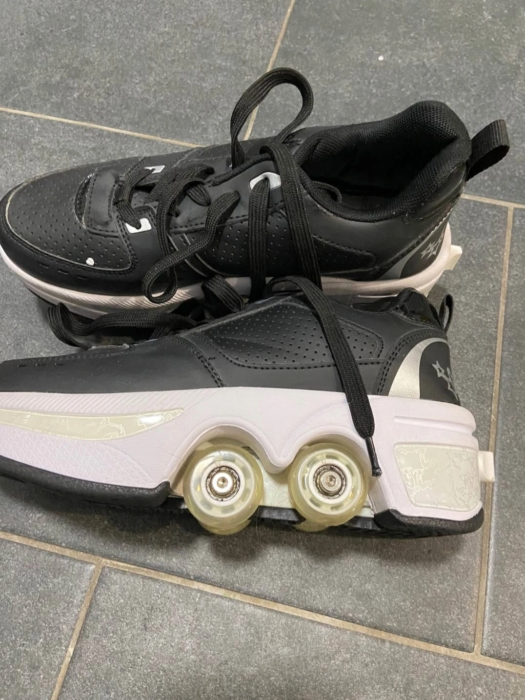 Pair of black roller shoes. Hidden wheels. Lace-up closure. Good condition. size 7. new in the box just tried once didn't fit.