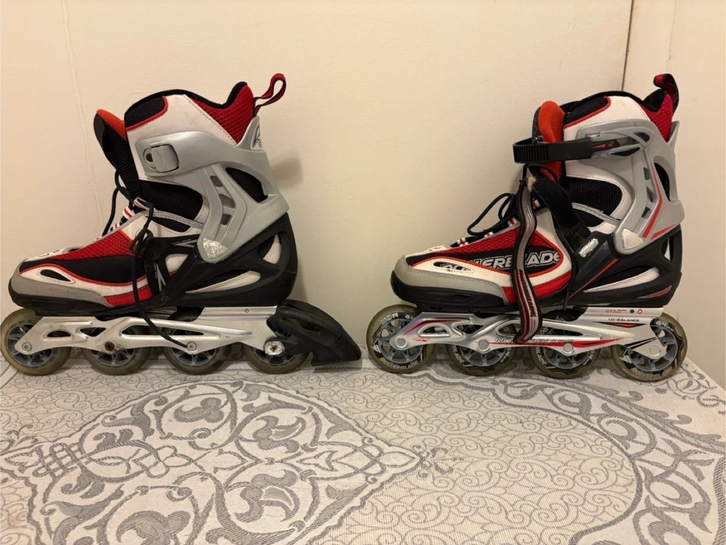 58Selling a pair of Rollerblade Spark 84 inline skates in great condition! They are size 11 I believe.The skates feature a red, white, black, and silver colour scheme and have the Rollerblade logo on the side. Perfect for recreational skating!