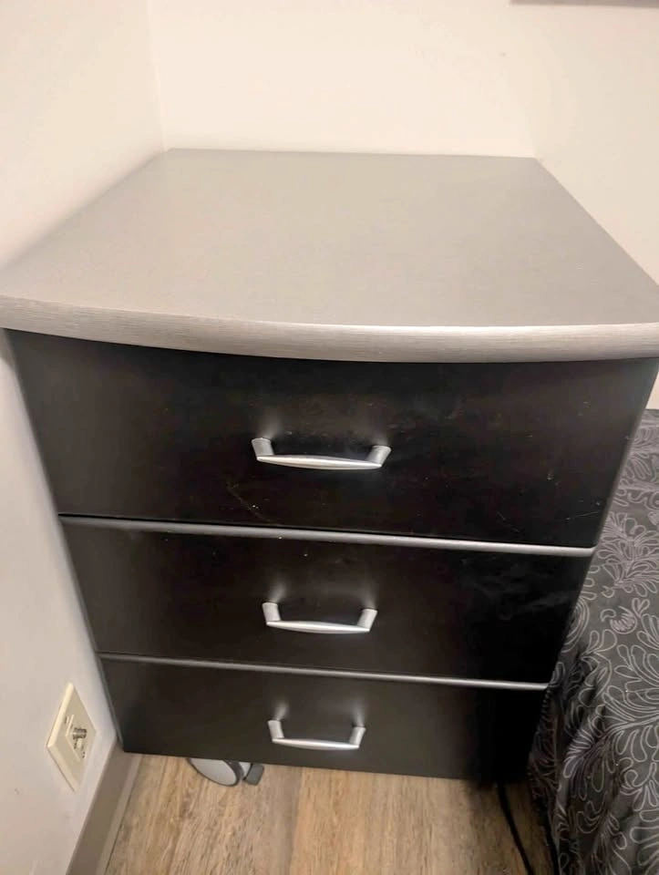 10Selling a sturdy, practical bedside table with great storage and easy mobility! Size: 21” x 20”, 28.5” in height Two drawers: one smaller on top for essentials, one larger below for extra storage. Smooth wheels for effortless movement – great for bedrooms, dorms, or small spaces. Good condition, works perfectly. Price: $30 Pickup: University of Waterloo residential area