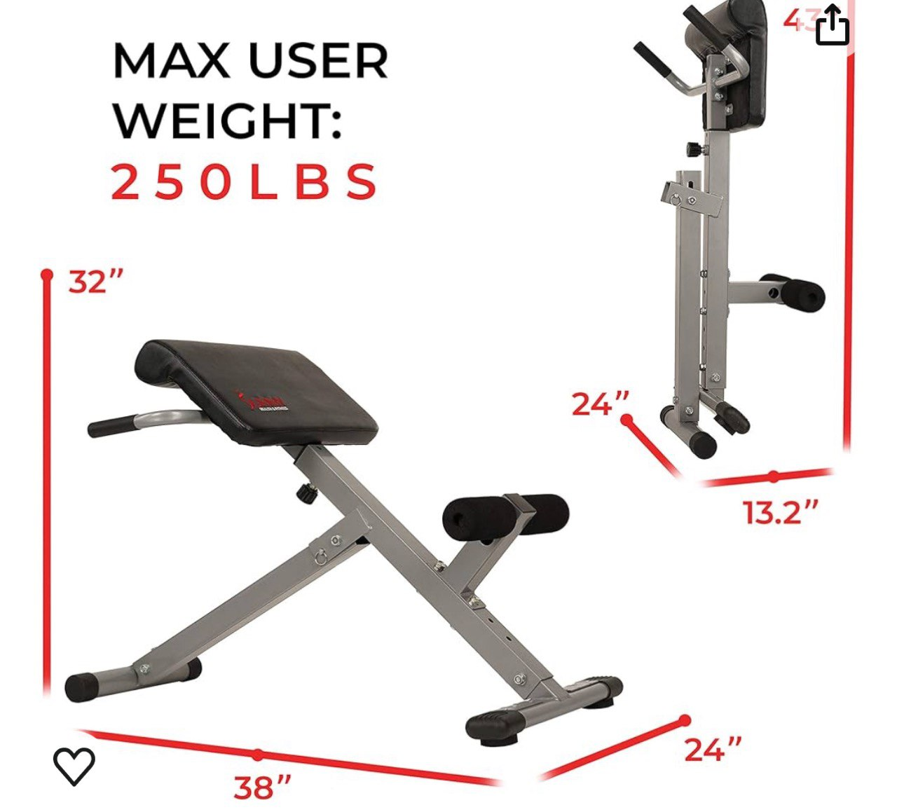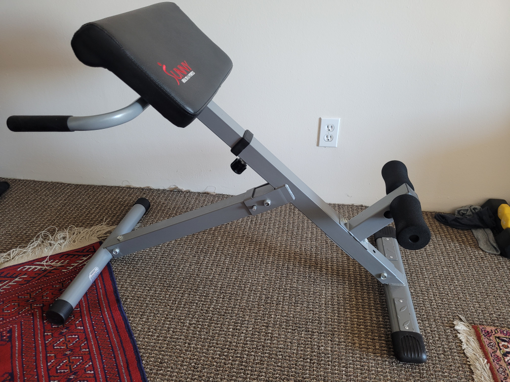 10Roman Workout Chair. Foldable. 45 degrees No delivery. Pick up West End condition: excellent make / manufacturer : Sunny health and fitness Size / Dimensions : 32×38x24