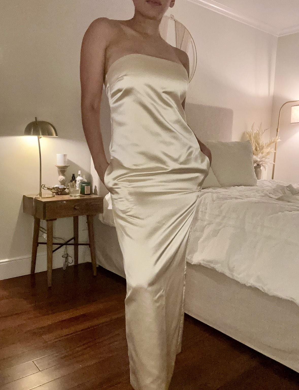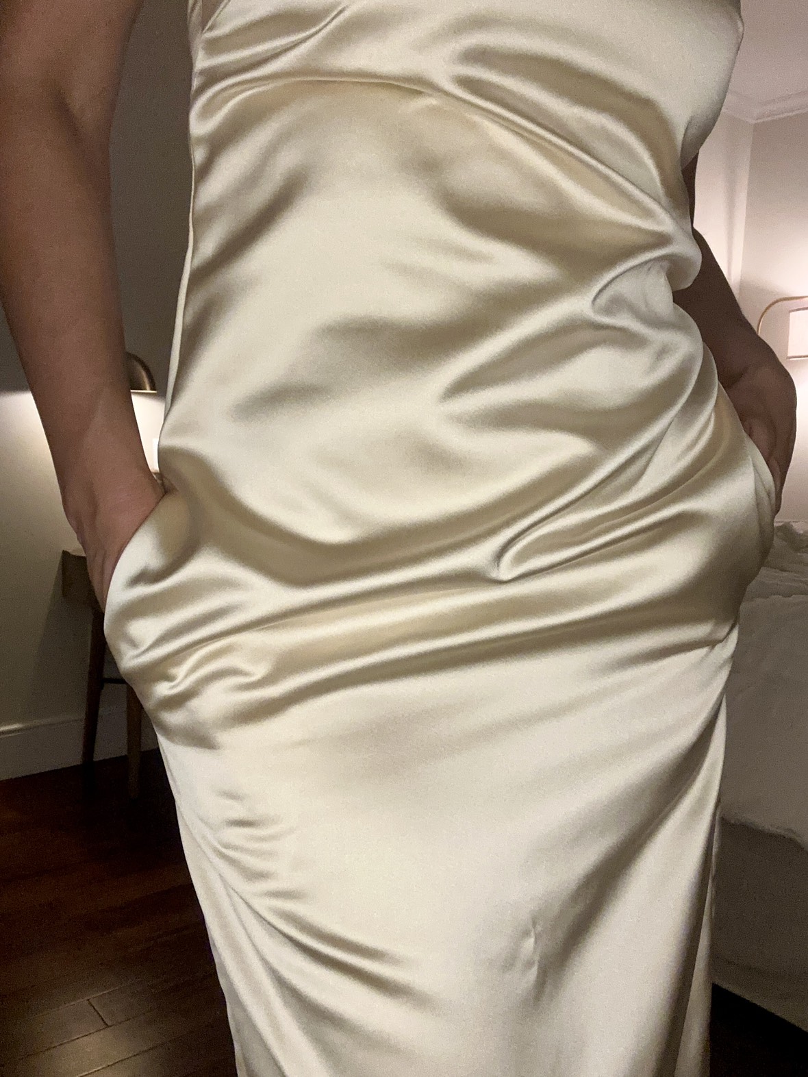 44Only worn once. Exquisite, delicate and romantic. Side pockets are the chic touch.