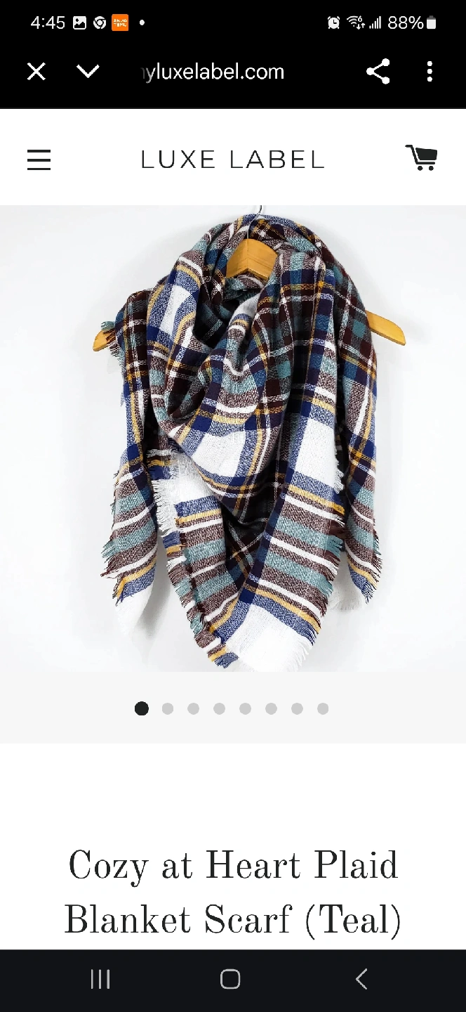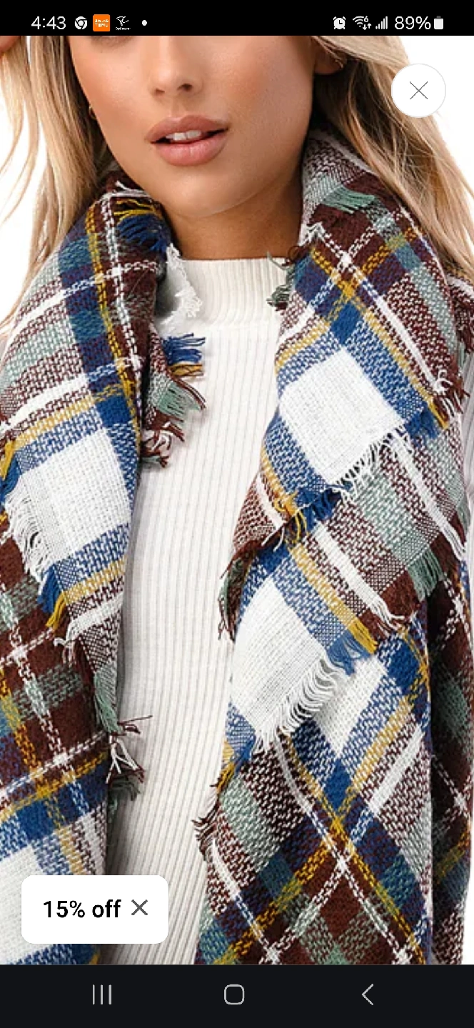 10Cozy up with this Romax plaid blanket scarf! It features a stylish plaid pattern with white, blue, brown, and yellow colours. The scarf also has tassels, adding a touch of fun and flair to your outfit