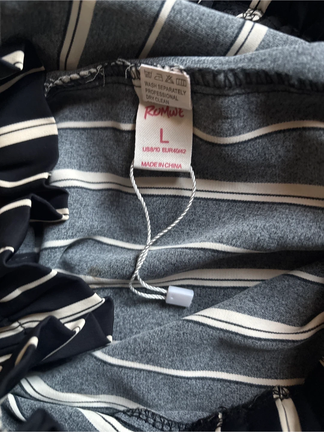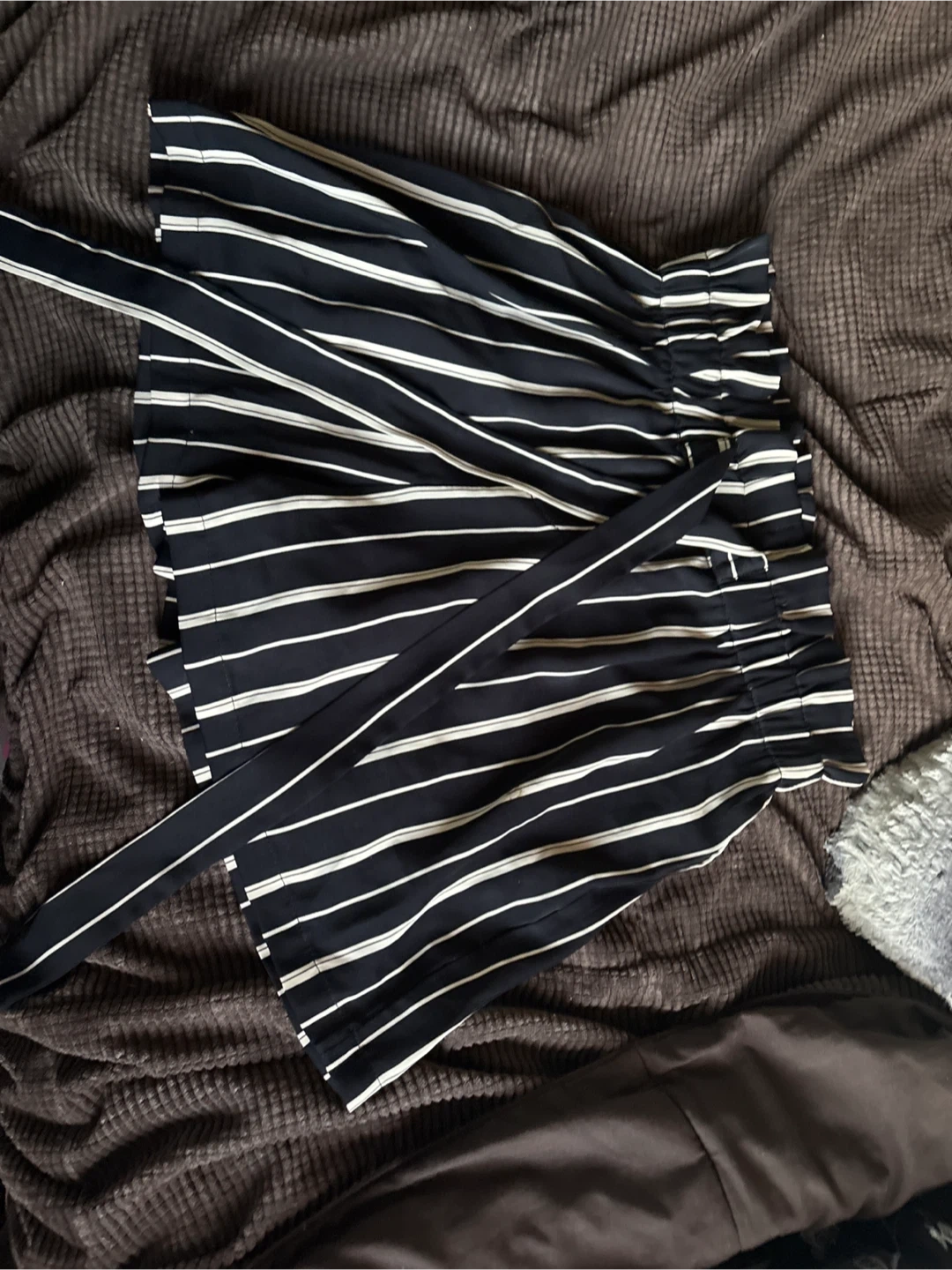 Selling a ROMWE striped shorts in size L. It's in great condition and features a stylish black and white striped design. Never worn!