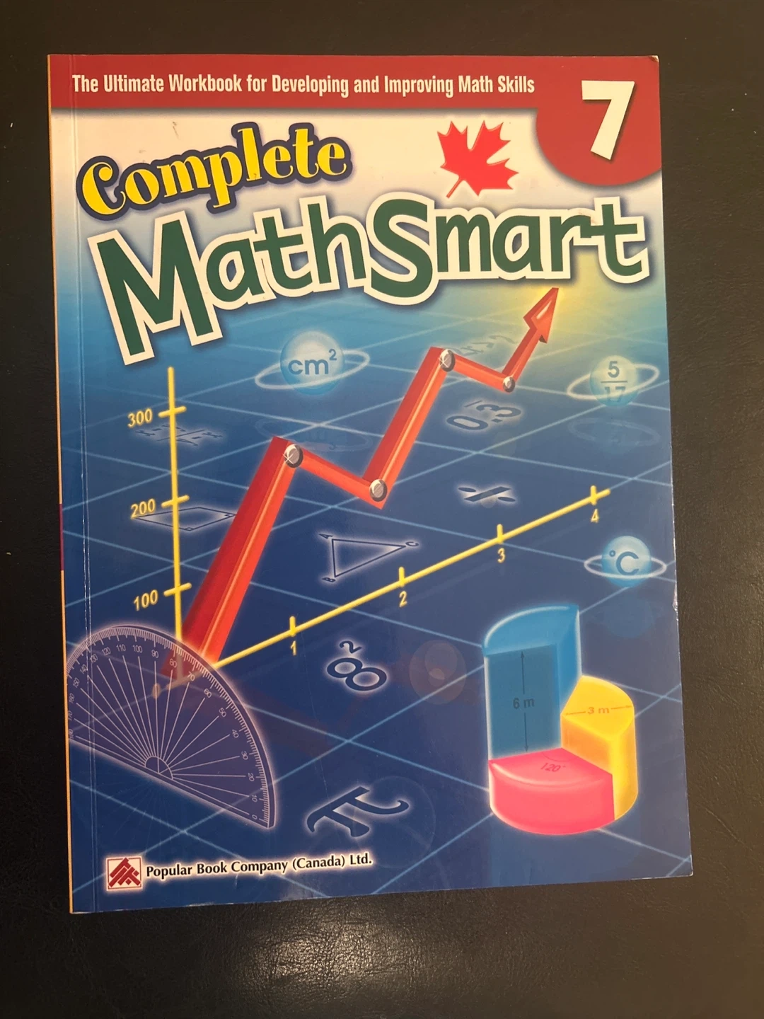 This is the Complete MathSmart Grade 7 workbook. It's designed for developing and improving math skills. Includes diagrams and practice problems.