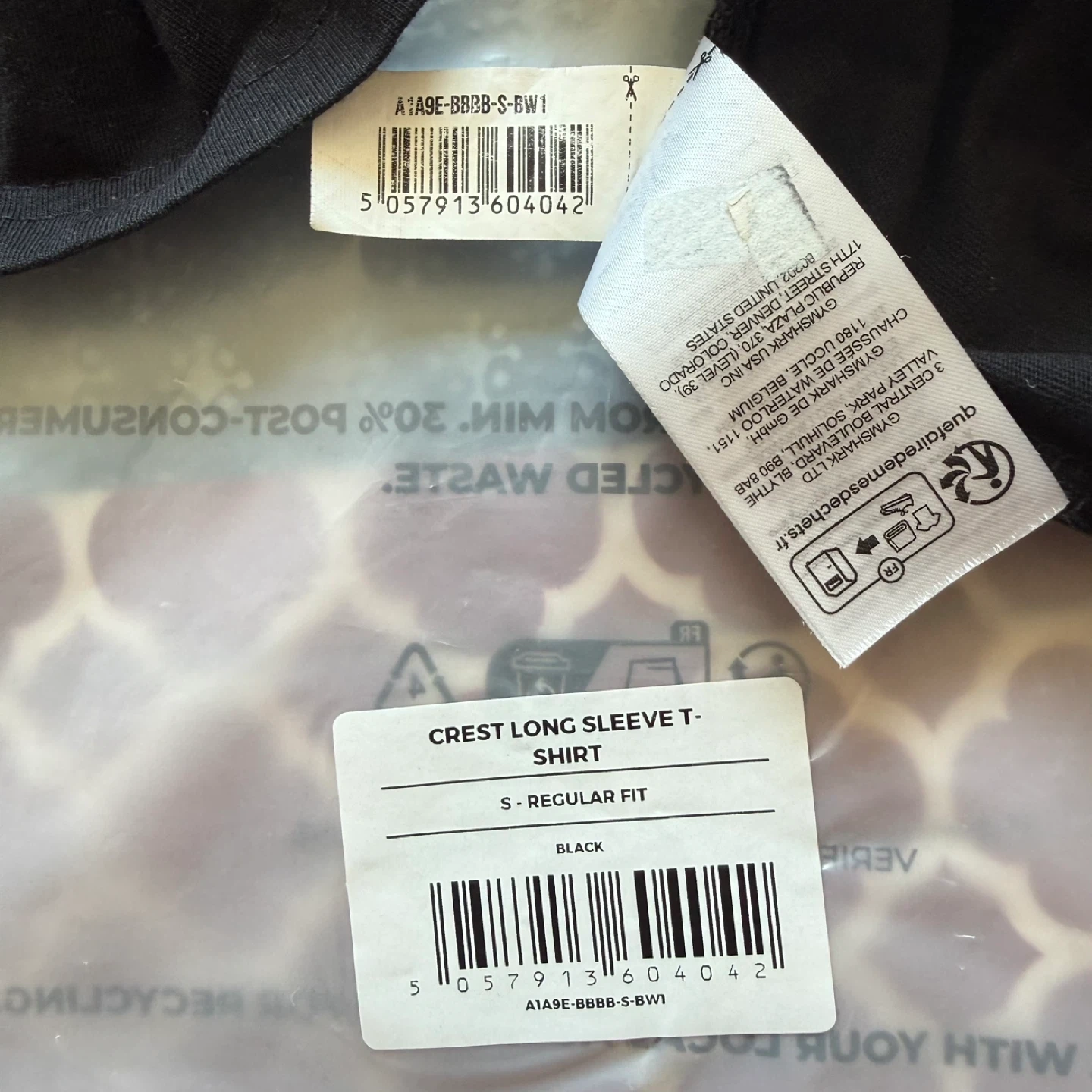 • Original Gymshark plastic store packaging.