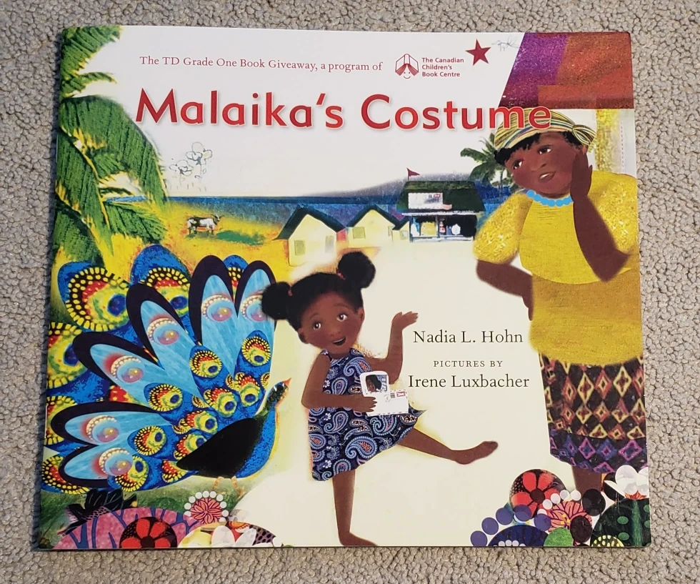 I'm selling a copy of "Malaika's Costume". It's a children's book written by Nadia L. Hohn and illustrated by Irene Luxbacher. It's a great story for kids!