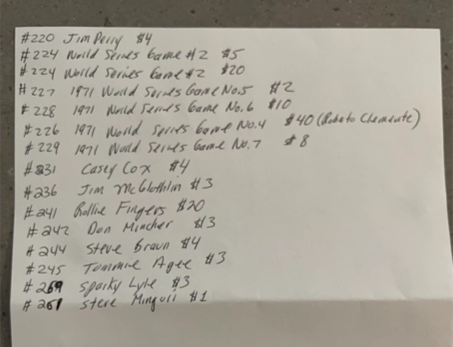 Price for all the cards add up to $500. Will sell all for $475 .