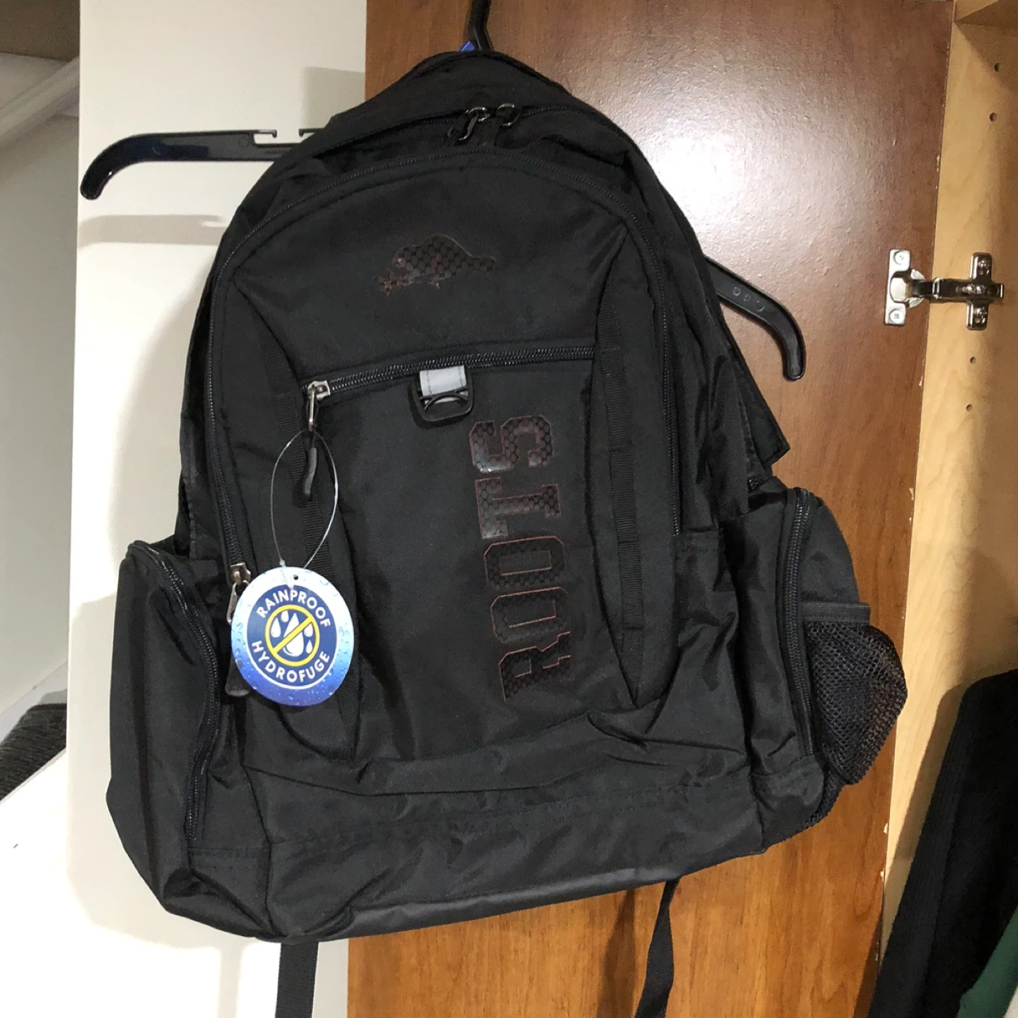 Selling a Roots black backpack.