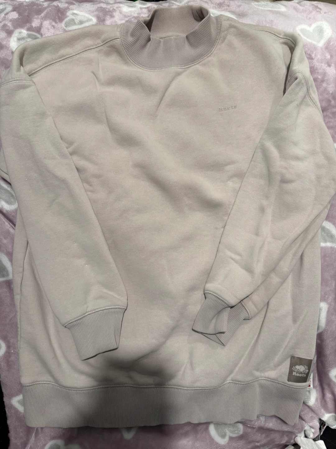 21Cozy Roots mock neck sweatshirt in a neutral colour! It's a size small and has a relaxed fit. Perfect for layering or just lounging around the house. There are a few small marks on the front, as pictured, but otherwise it's in good condition!