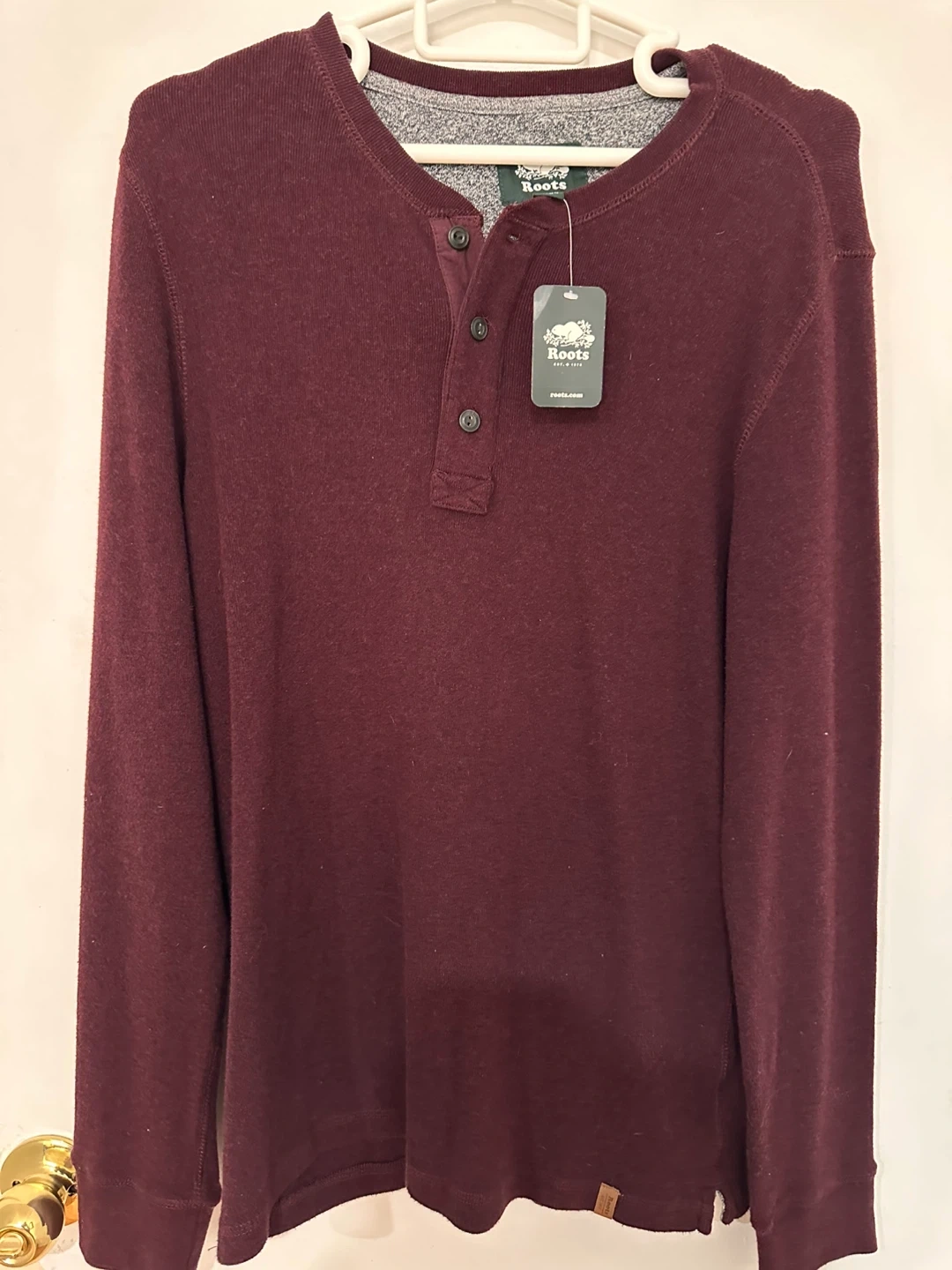 10Roots Pepper Henley in a lovely crimson colour! This is a size M/M, originally bought for $58. It's a great for fall season!
