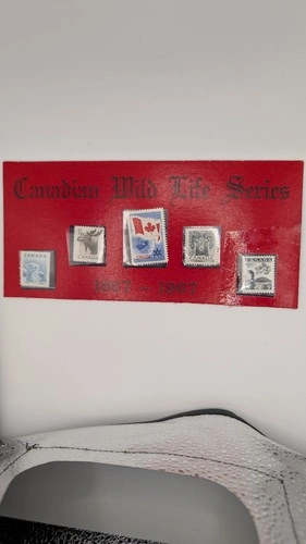 A wonderful piece of Canadian philatelic history, this "Canadian Wild Life Series" set was issued to commemorate the 100th anniversary of the Canadian Confederation (1867–1967). The stamps are beautifully presented on the original red commemorative card.