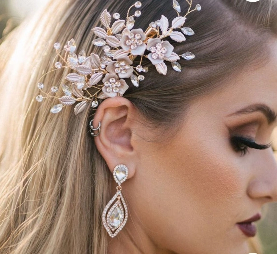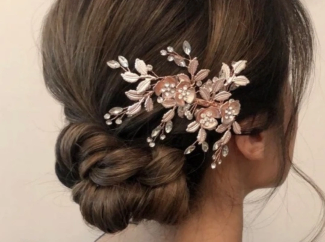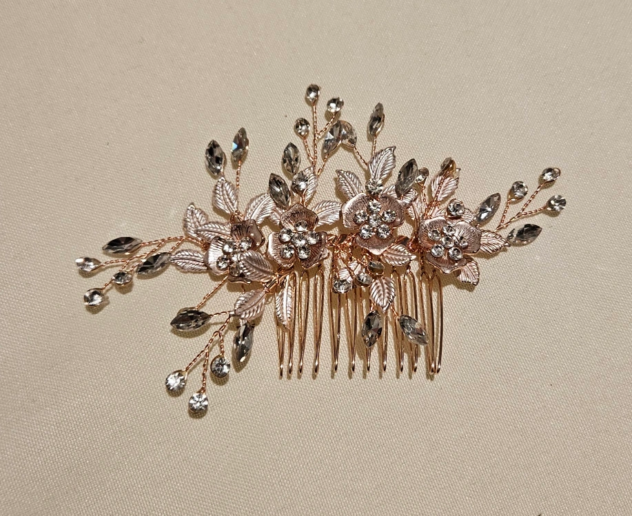 28A delicate rose gold comb with small pearl and crystal embellishments. Perfect for a wedding or special occasion.