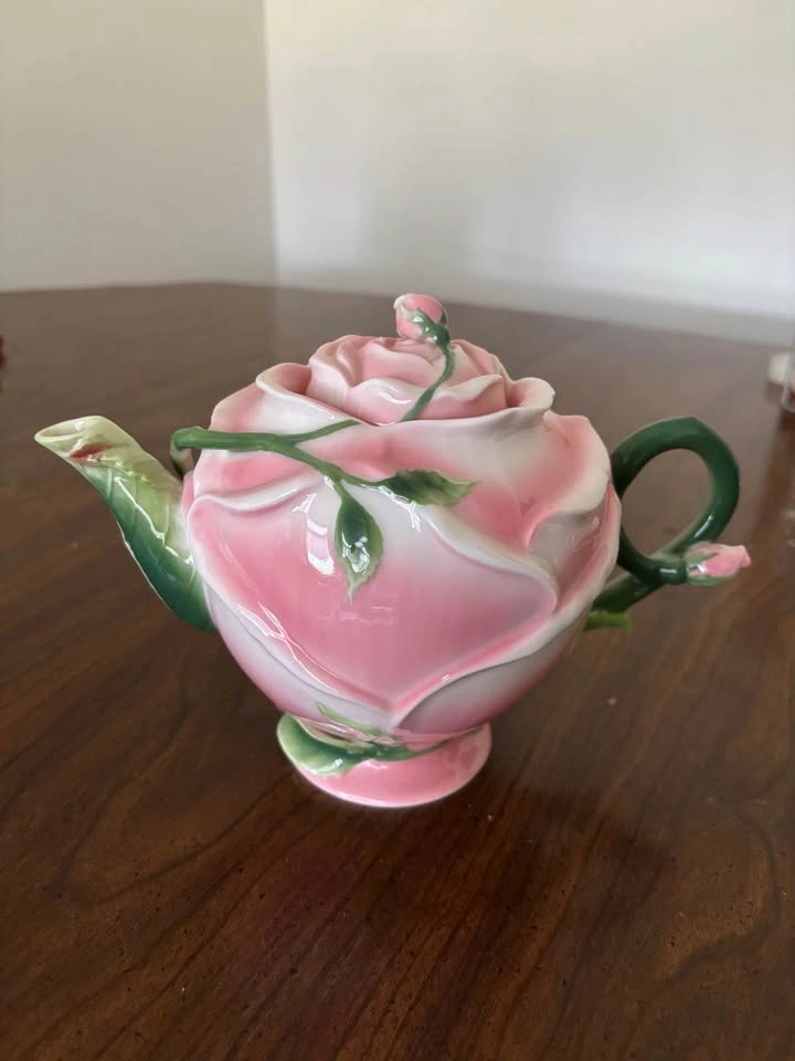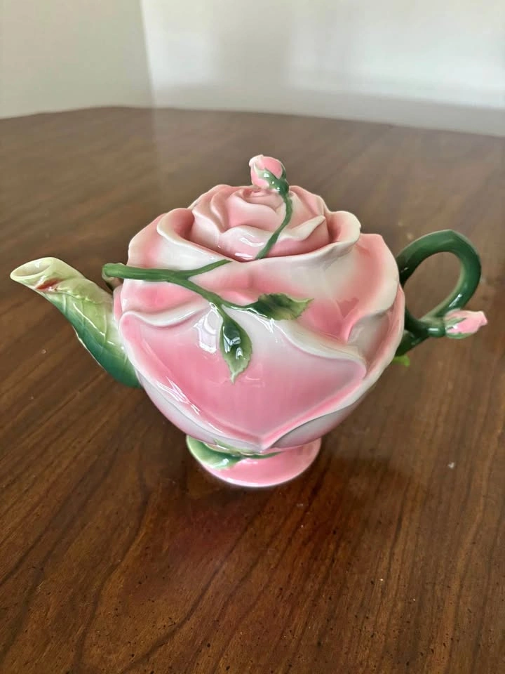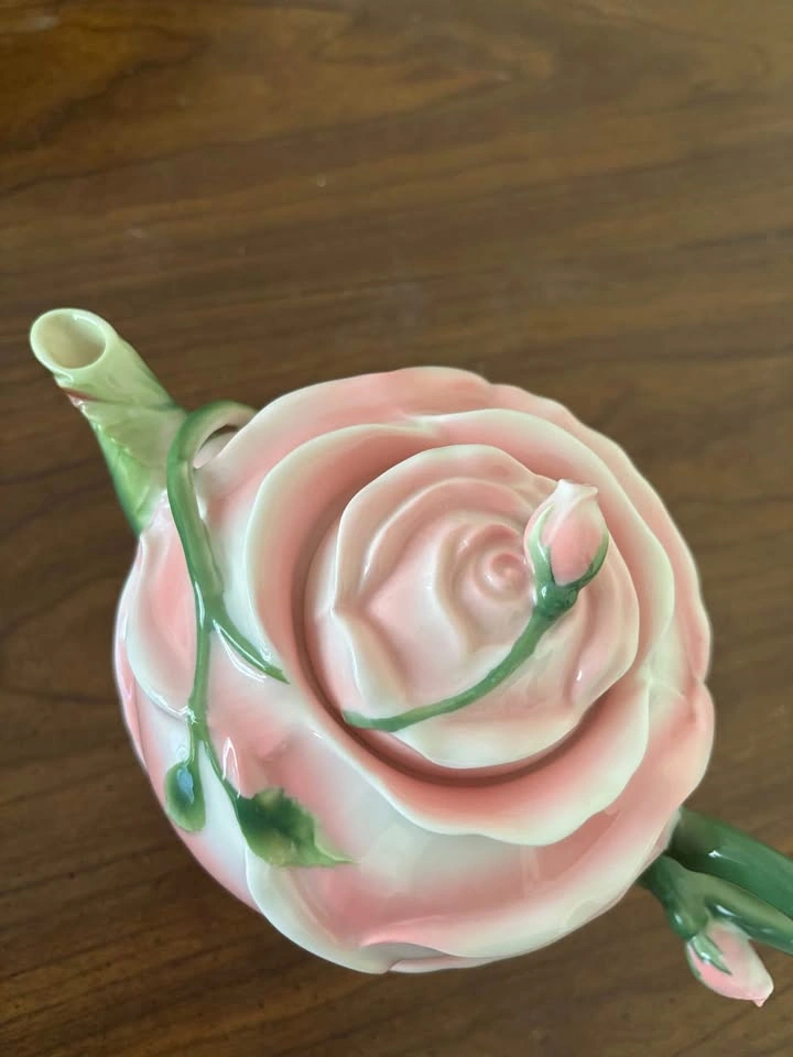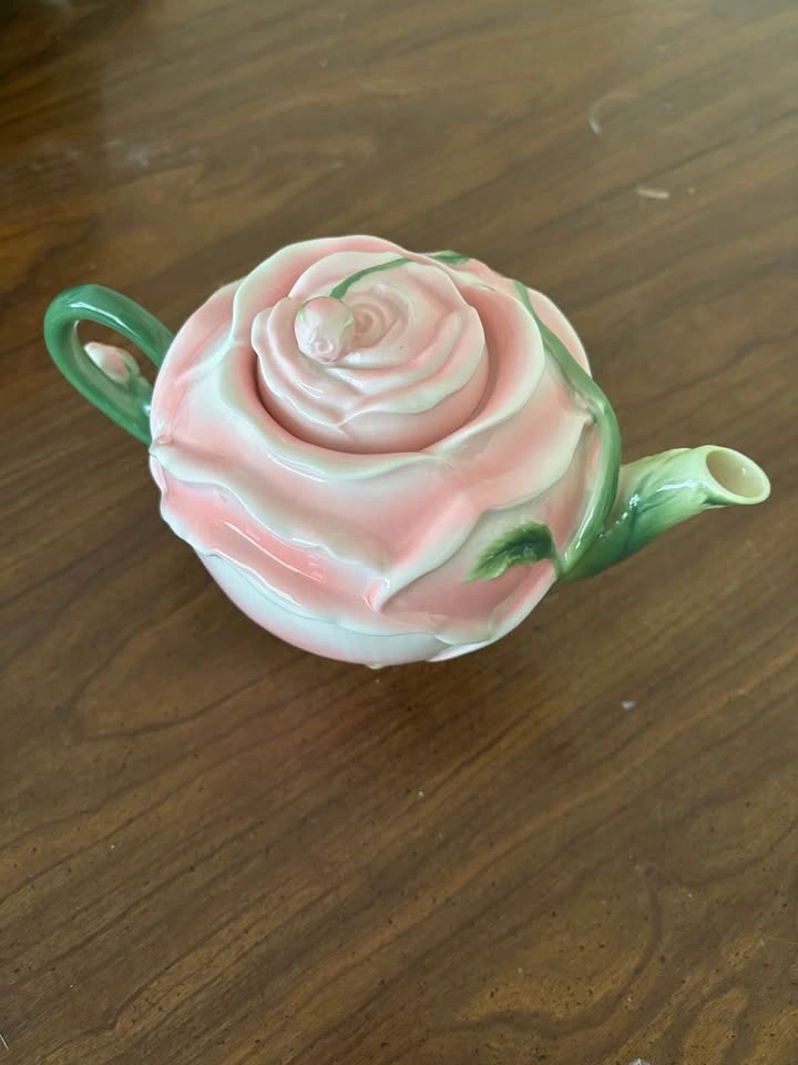 10Beautiful tea pot in the shape of a rose. Barely used. Is great for making tea or just for decoration