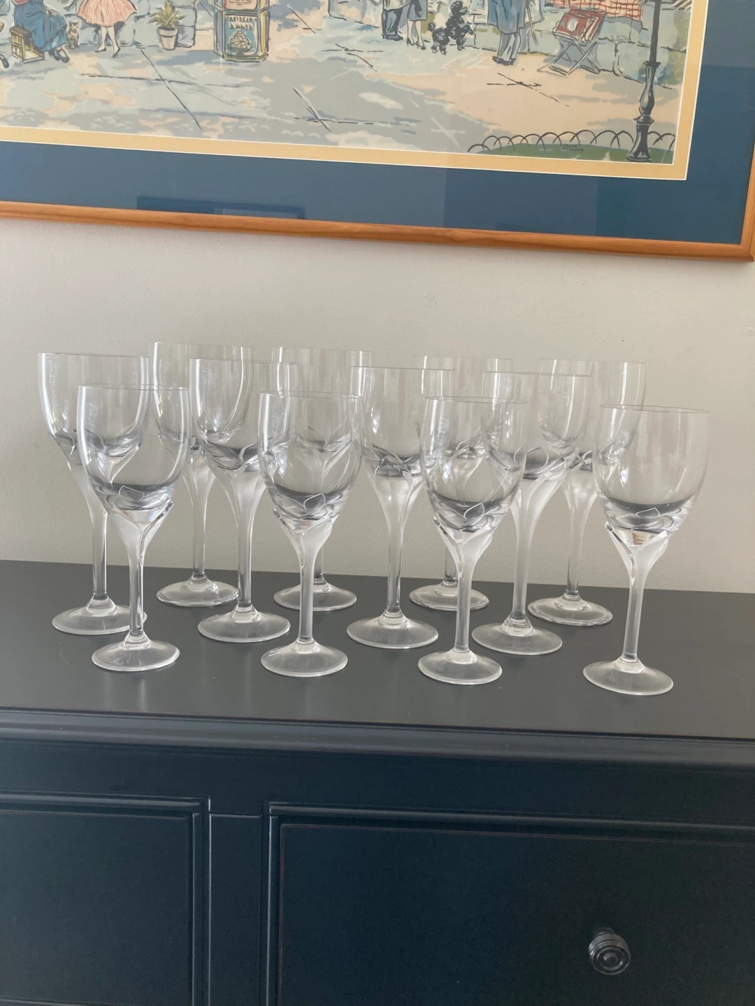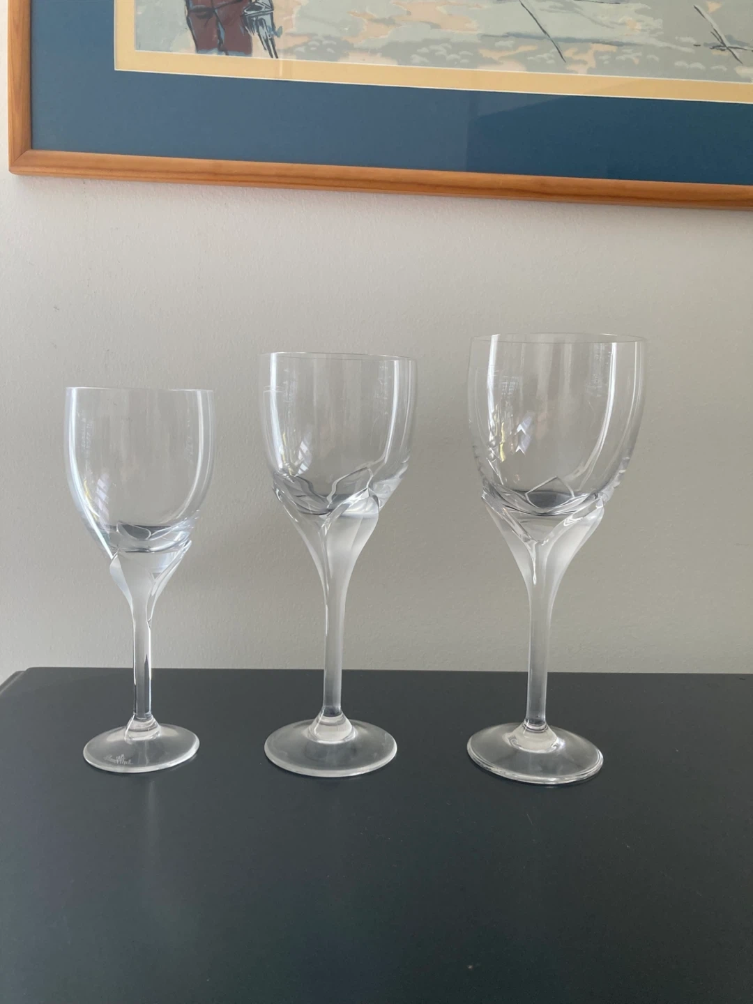 Selling a set of 12 Rosenthal wine glasses. Iris frosted stem. 3 sizes, 4 each. They are in great condition and ready to be used for your next dinner party or special occasion