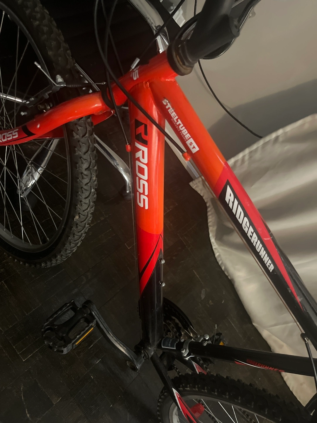 Red and black mountain bike. Steel frame. Good condition. Ready to ride.
