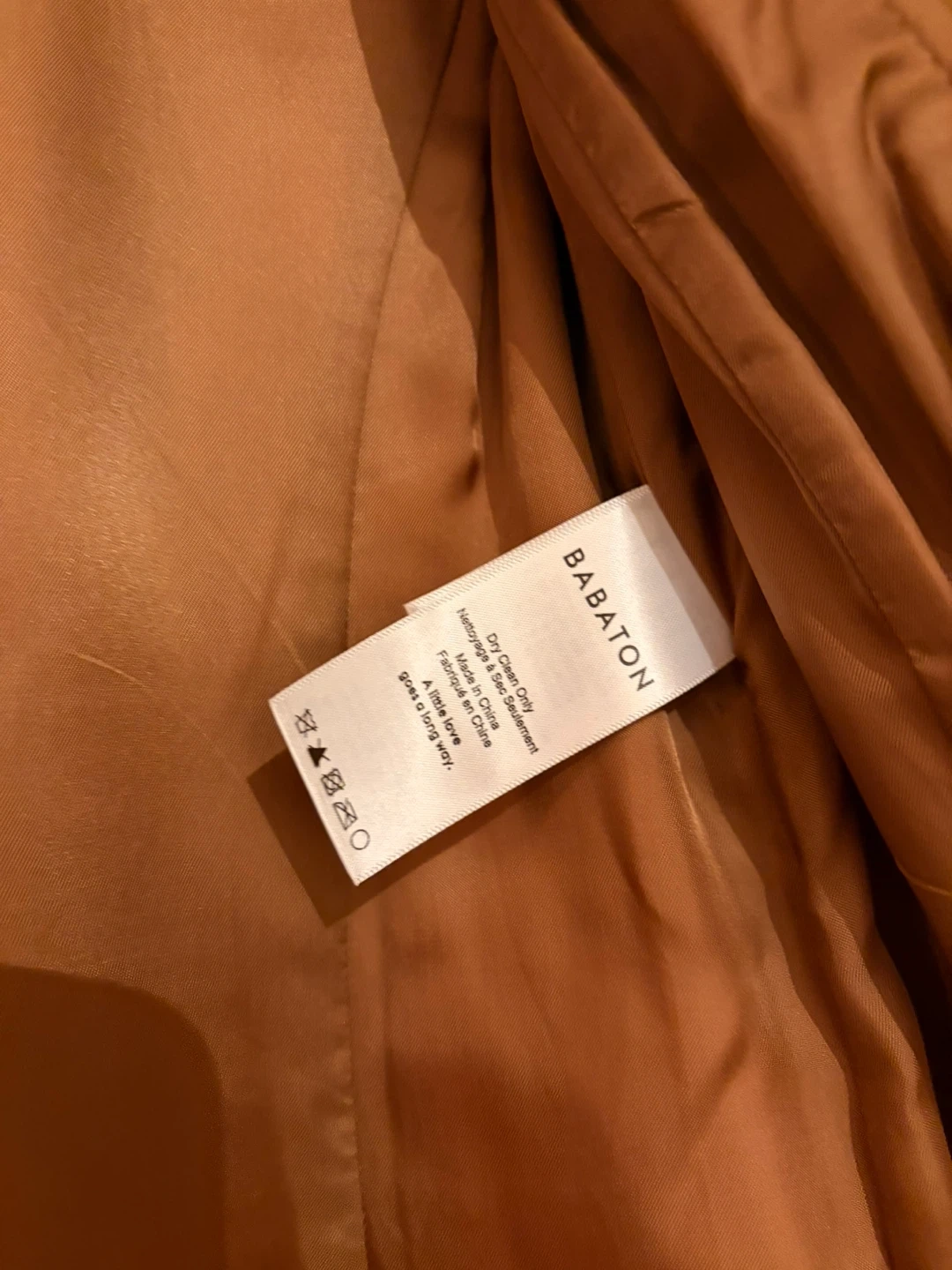Selling a Babaton coat in size XS! It's a beautiful caramel brown colour and made from a virgin wool blend (94% wool, 6% Nylon). Perfect for staying warm and stylish during the cooler months!
