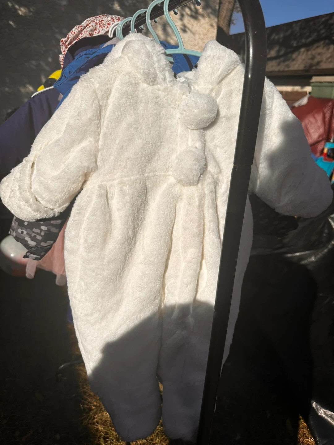 Keep your little one cozy with this adorable white faux fur snowsuit from Rothschild! Perfect for those chilly Canadian winters, this snowsuit is sure to keep your baby warm and snug. It's in great condition and ready for a new home