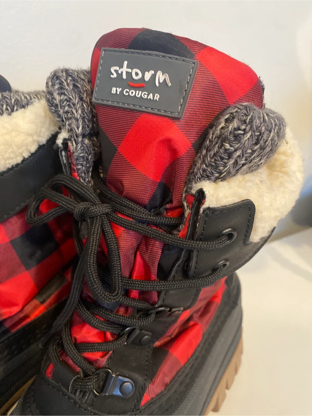 Keep your feet warm and stylish with these Storm by Cougar winter boots! They feature a fun buffalo plaid design in red and black, with cozy knit and faux fur detailing. Perfect for braving the Canadian winter!