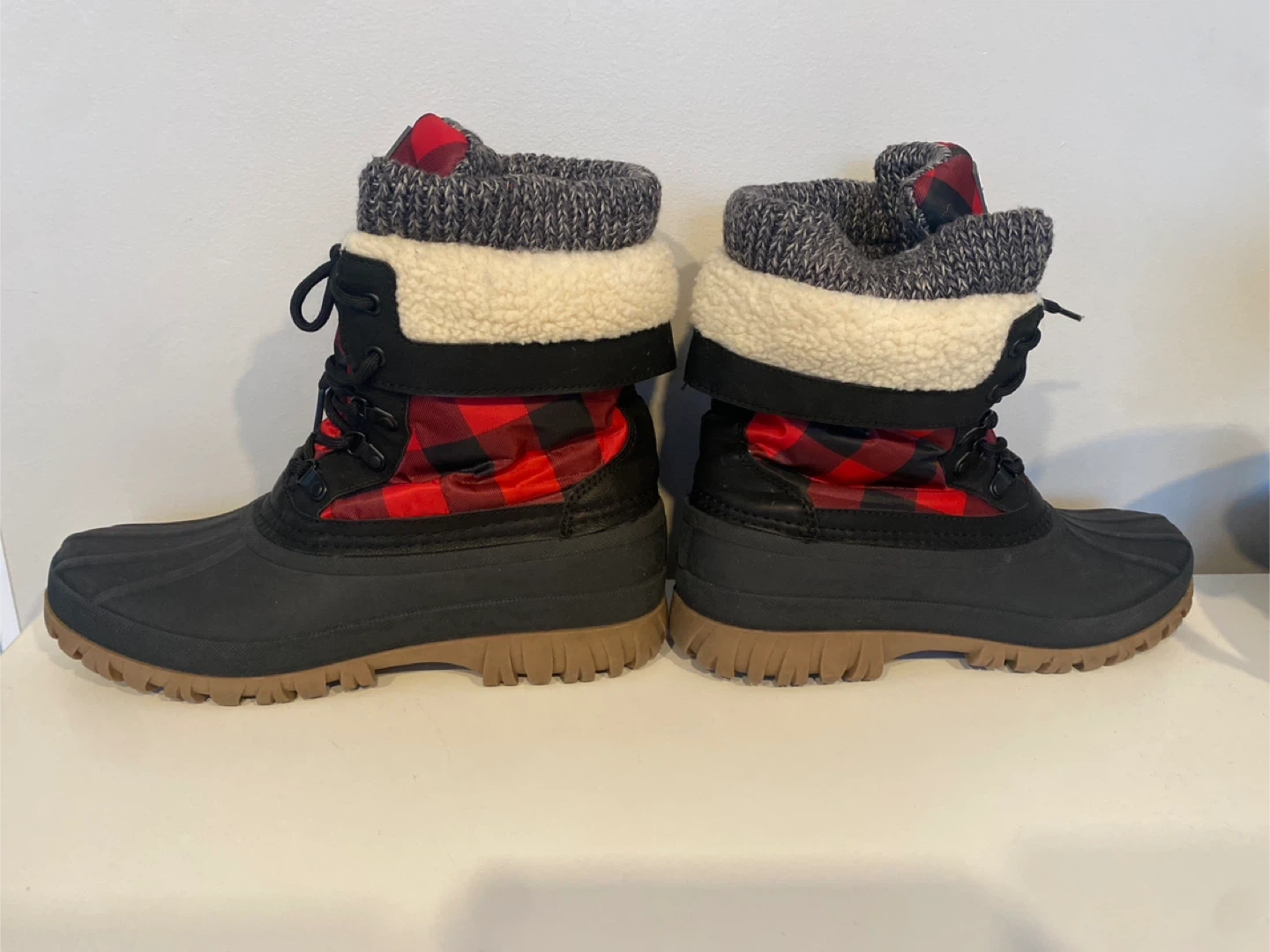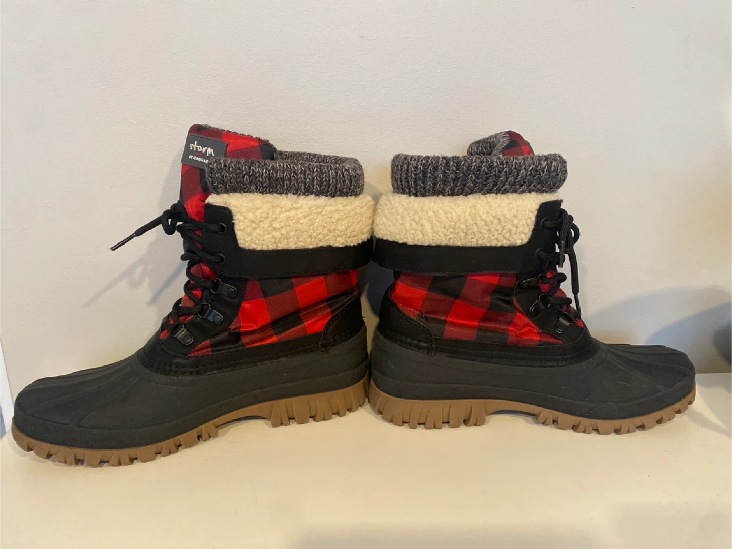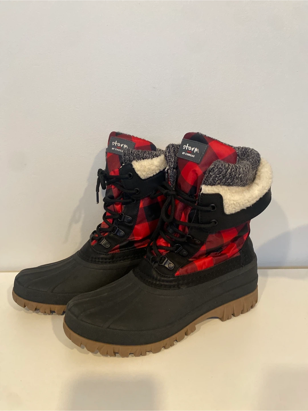 Keep your feet warm and stylish with these Storm by Cougar winter boots! They feature a fun buffalo plaid design in red and black, with cozy knit and faux fur detailing. Perfect for braving the Canadian winter!