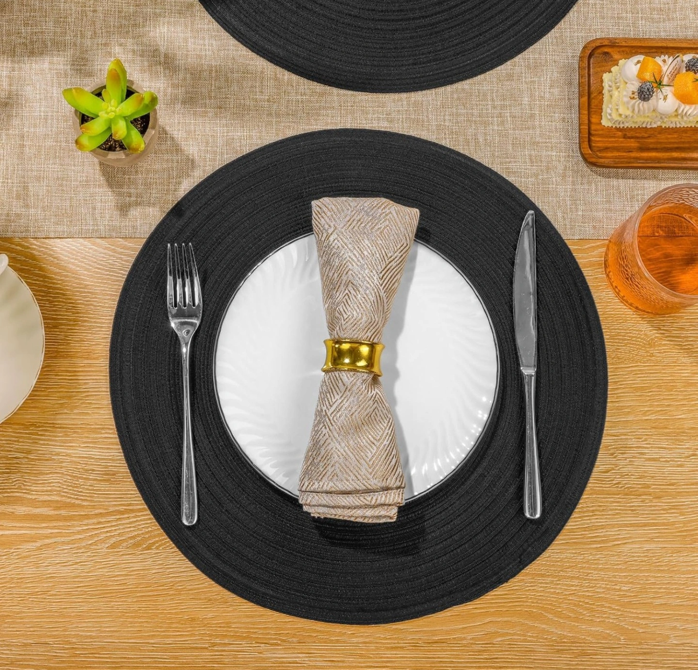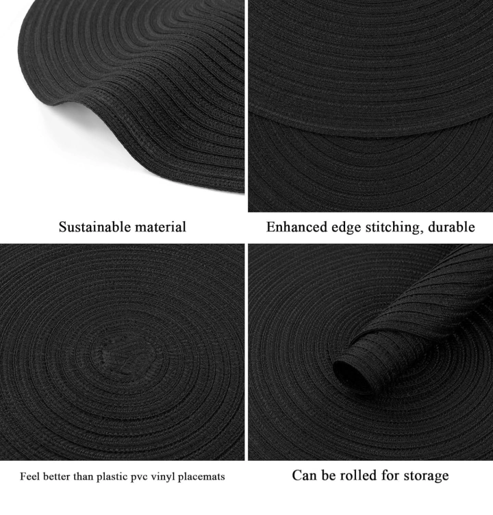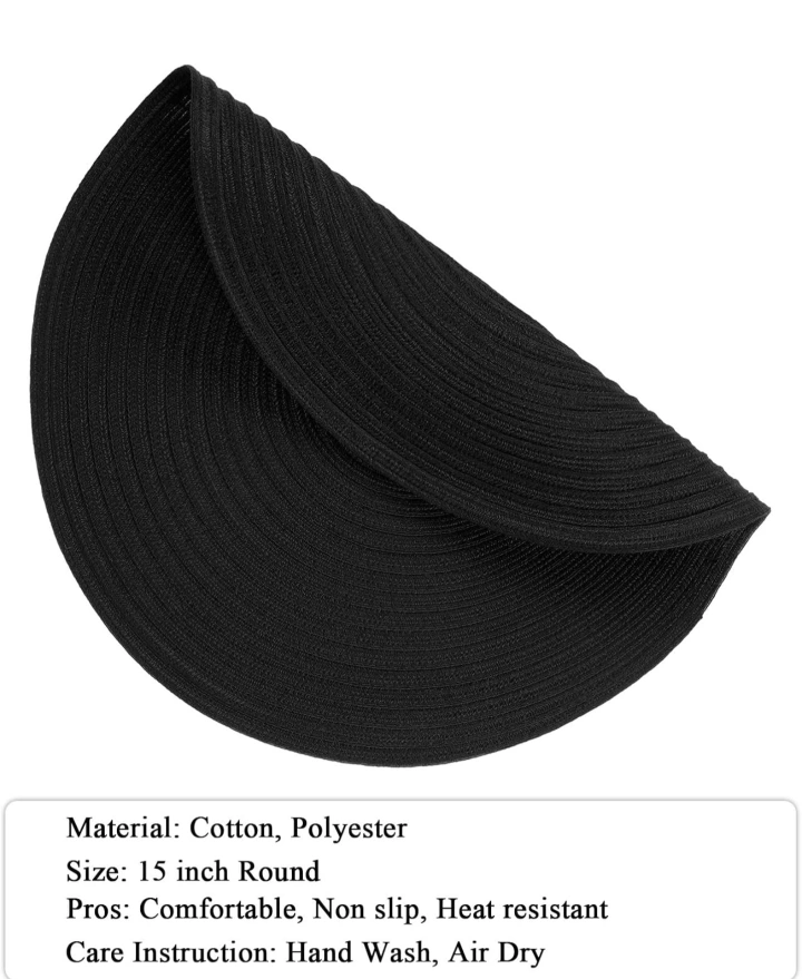 26Brand New Table Mats. Easy to clean: Wipe clean with damp cloth. Hand wash and air dry. • Set of 8 • Premium Quality • Large Size - 15 inches • No Fade • Decorative Design • Wipe Clean • Reversible