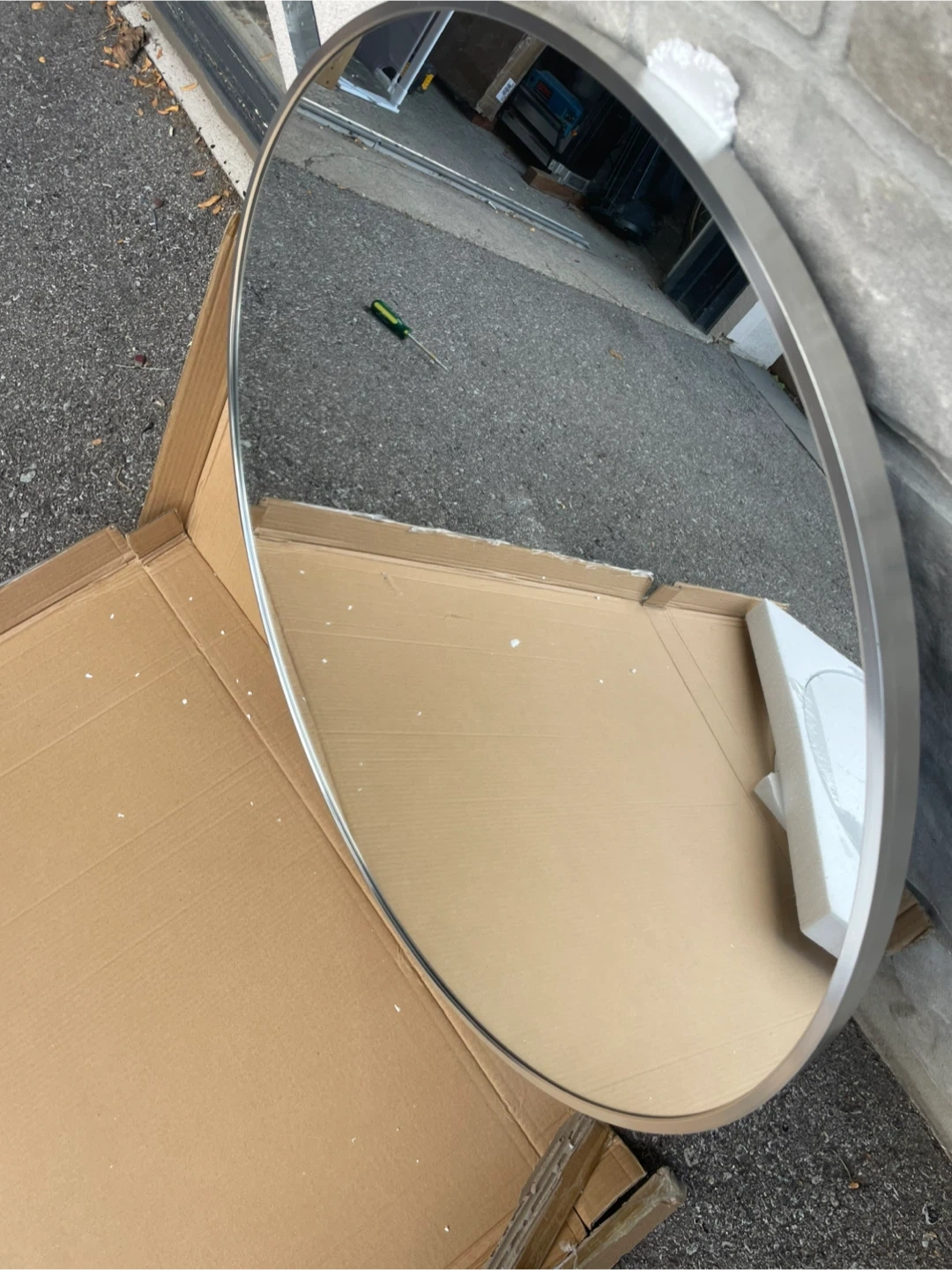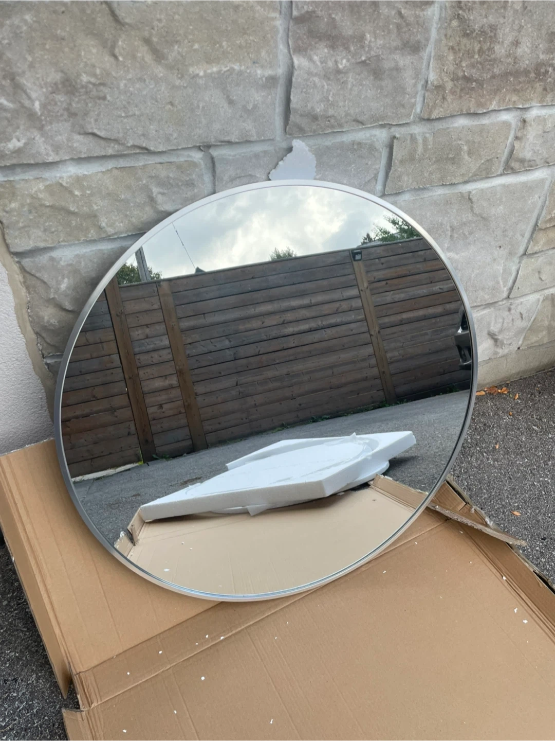 Selling a round mirror with a silver frame! It's in great condition and comes with the original box