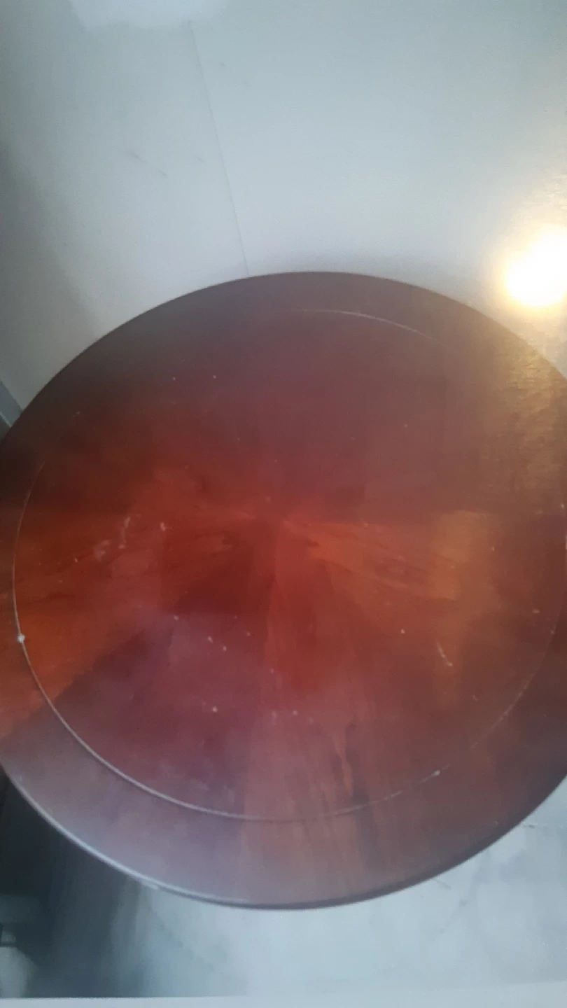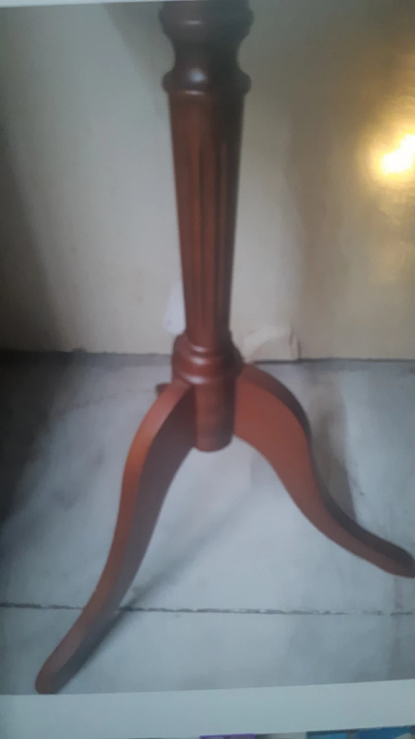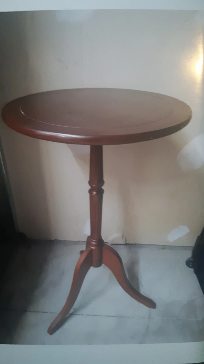 104Selling a lovely round wooden accent table. It's perfect for adding a touch of elegance to any room. The table features a classic design with a sturdy base. It has some signs of use but is still in good condition we have two