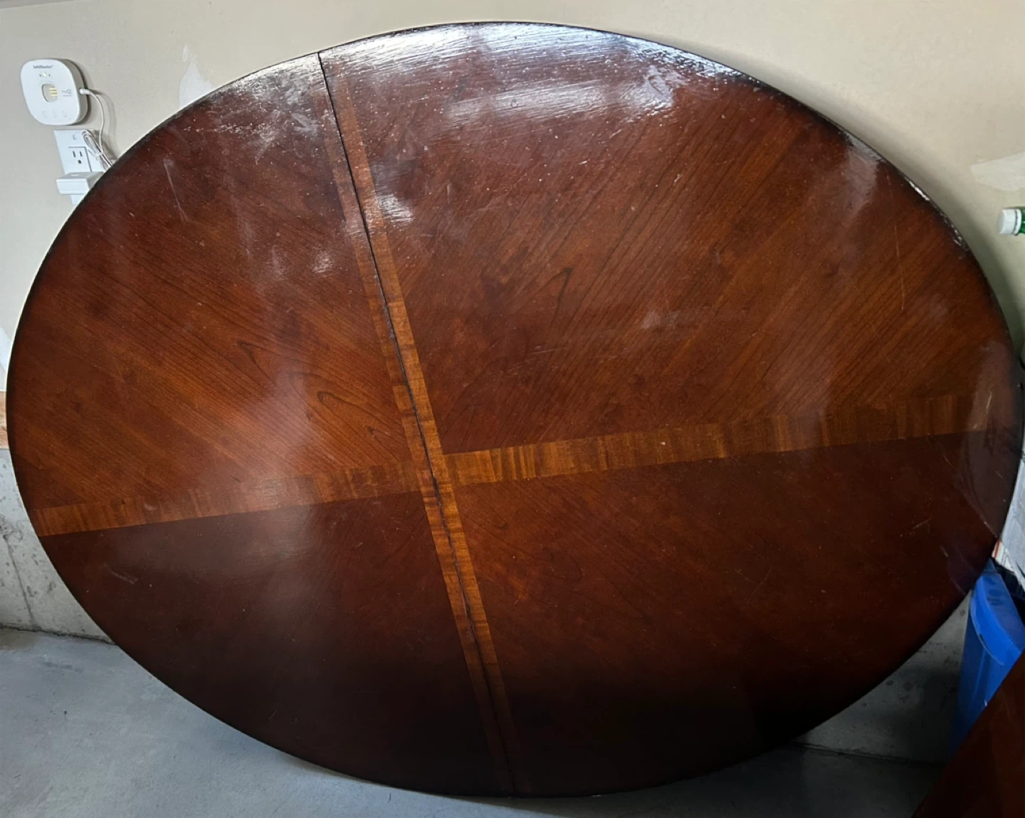 91Read through entire ad before responding. Moving sale!! Selling a round wooden table with a beautiful dark brown finish. It is sturdy and will last for a long time. There is a middle piece that can be added or removed. It's in good condition and would be a great addition to any dining room or kitchen. The table comes disassembled. There are some scratches on the legs and minor ones on the side of table, but give it a good polish and once it’s assembled, you won’t even notice. Dimensions: 74L (or 5ft) X 48W (or 4ft) X 31H in inches See Facebook ad for video: https://www.facebook.com/share/12EXUJcjYn5/?mibextid=wwXIfr Serious buyers can contact me when you are ready to arrange an exact date/time for pick up in Pinecreek Southwest. Cash only! NOTE: I will not answer “is it still available.” If the ad isn’t pending or sold, then it’s still available. See my other ads for more items.