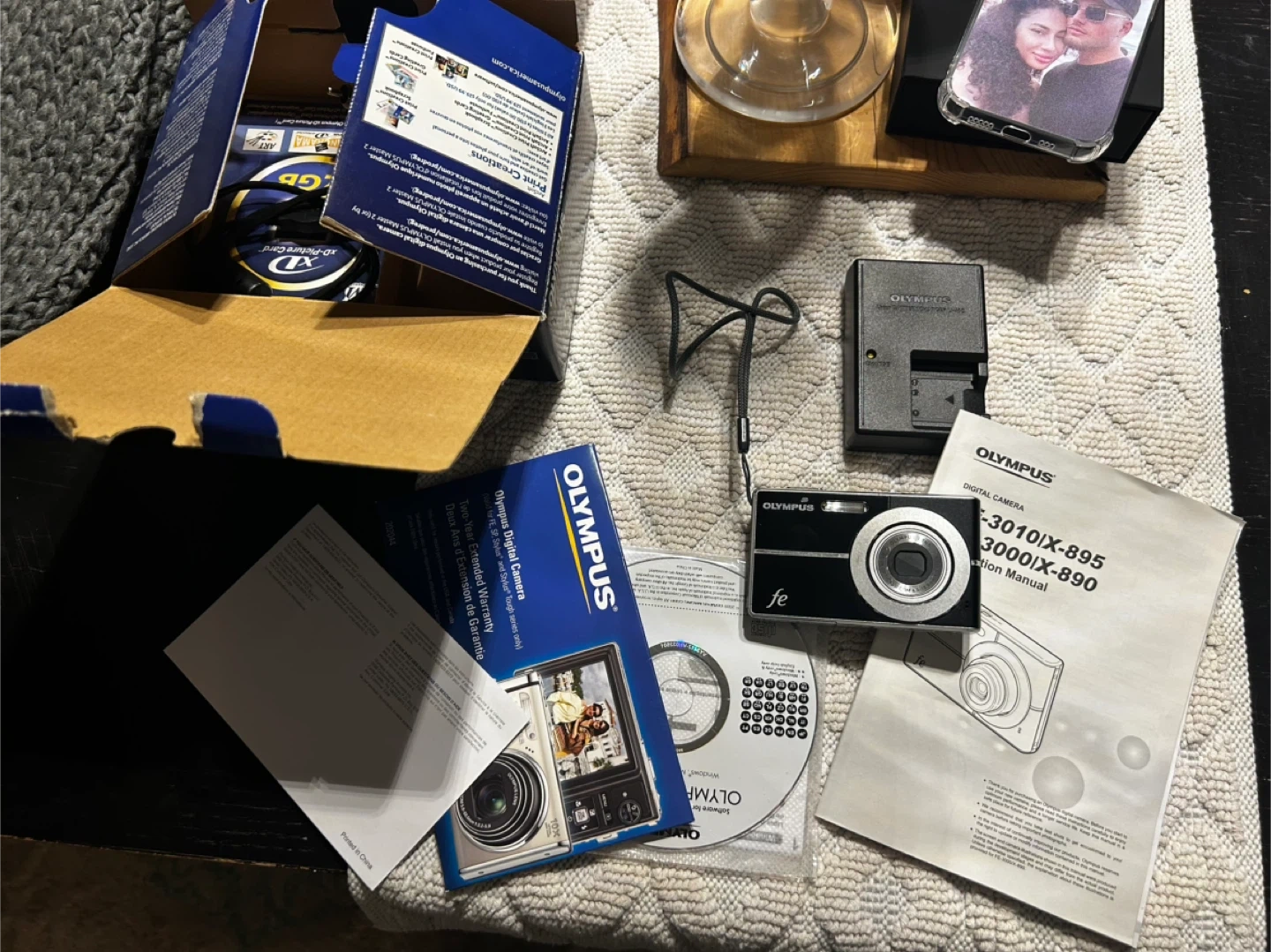 Selling an Olympus FE-3010 digital camera! It comes with its original box, charger, CD, and instruction manual. It's in great condition and ready for a new home! No issues!